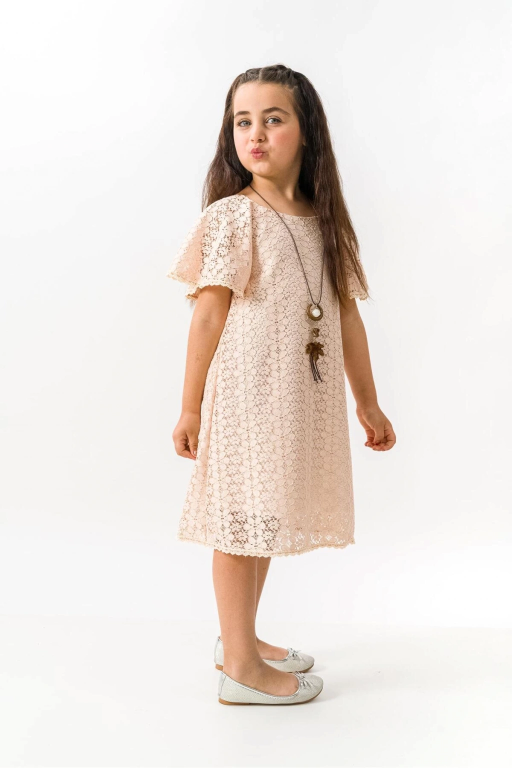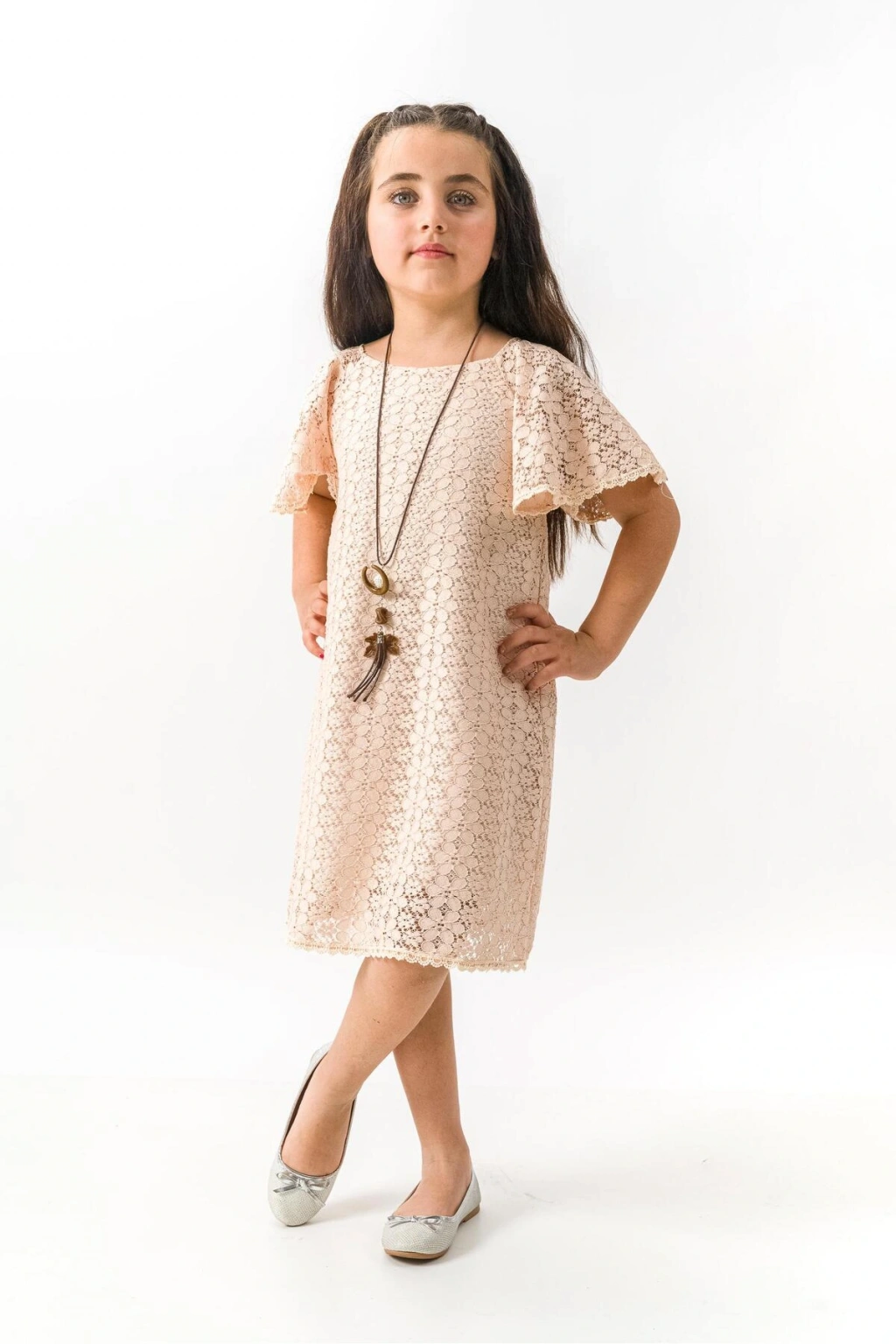 Kız Çocuk Dantelli kolyeli özel gün yazlık elbise