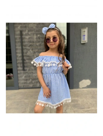 Kız Çocuk Güpürlü Ekose Elbise
