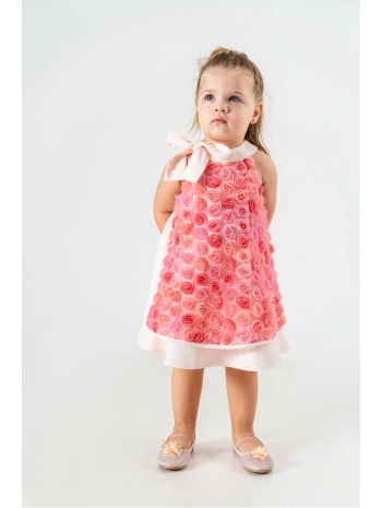 PEMBE GÜLLÜ KIZ ÇOCUK DOĞUM GÜNÜ VE ÖZEL GÜN ELBİSESİ