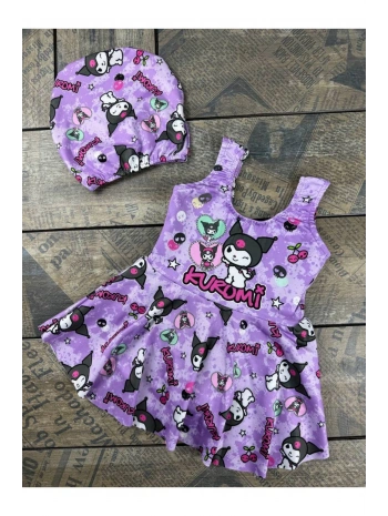 Kuromi desenli kız çocuk bikini 3lü kombin