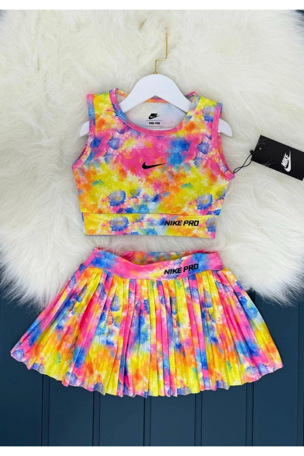 Kız çocuk günlük crop şık tasarım şortlu etek boxer canlı renkler spor crop alt üst takım