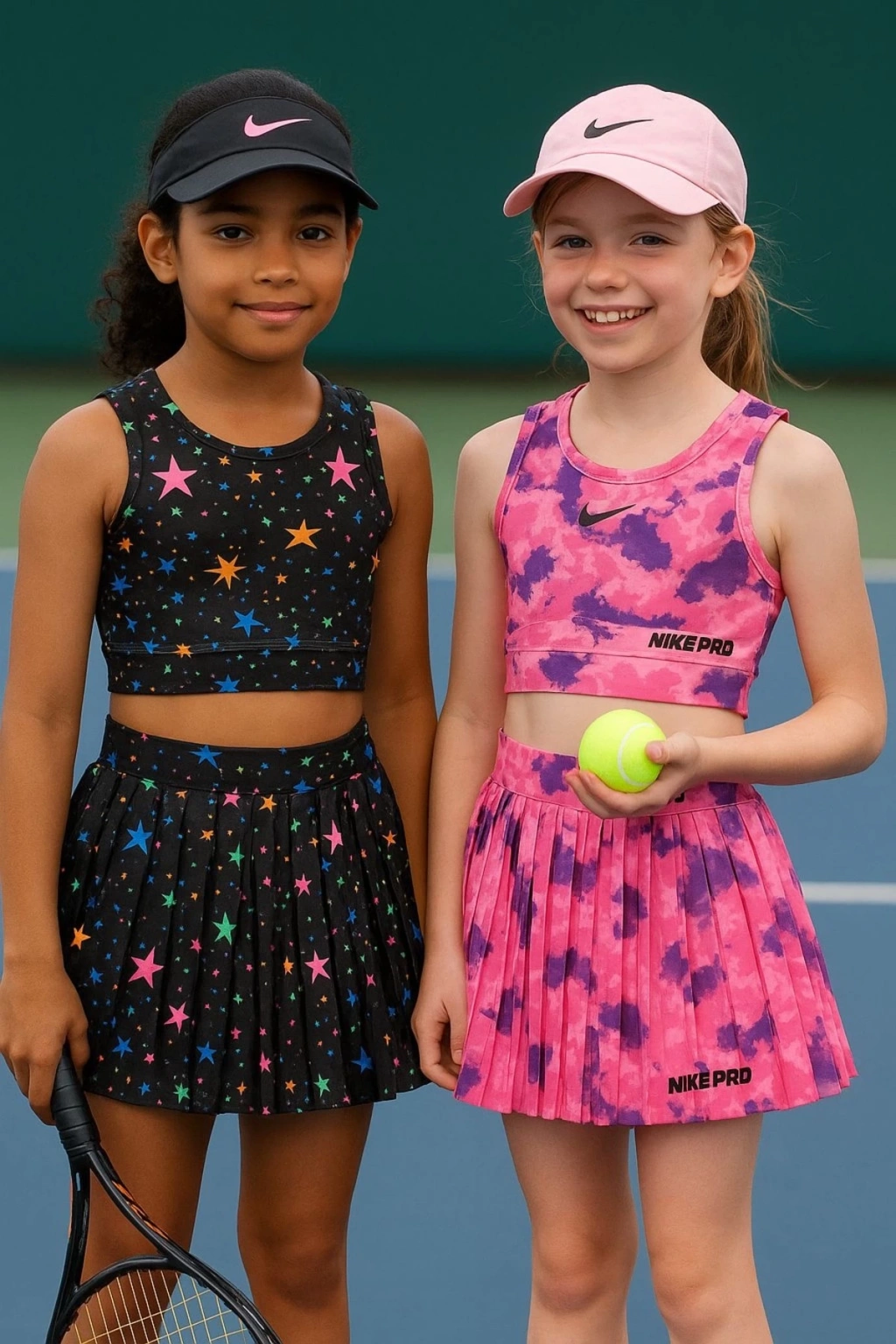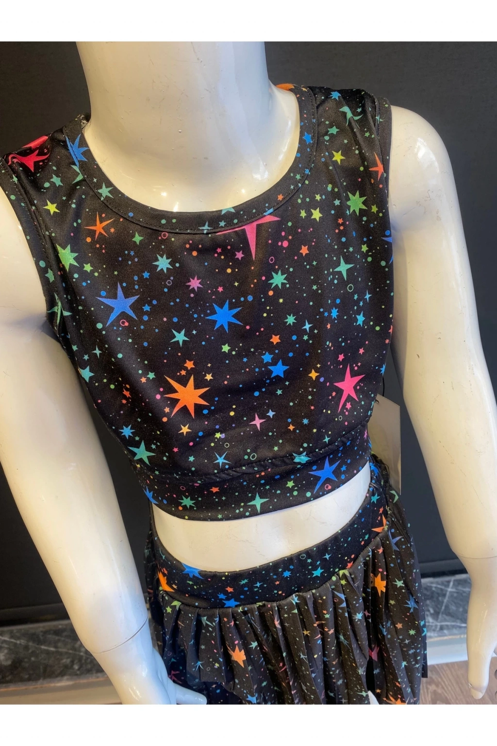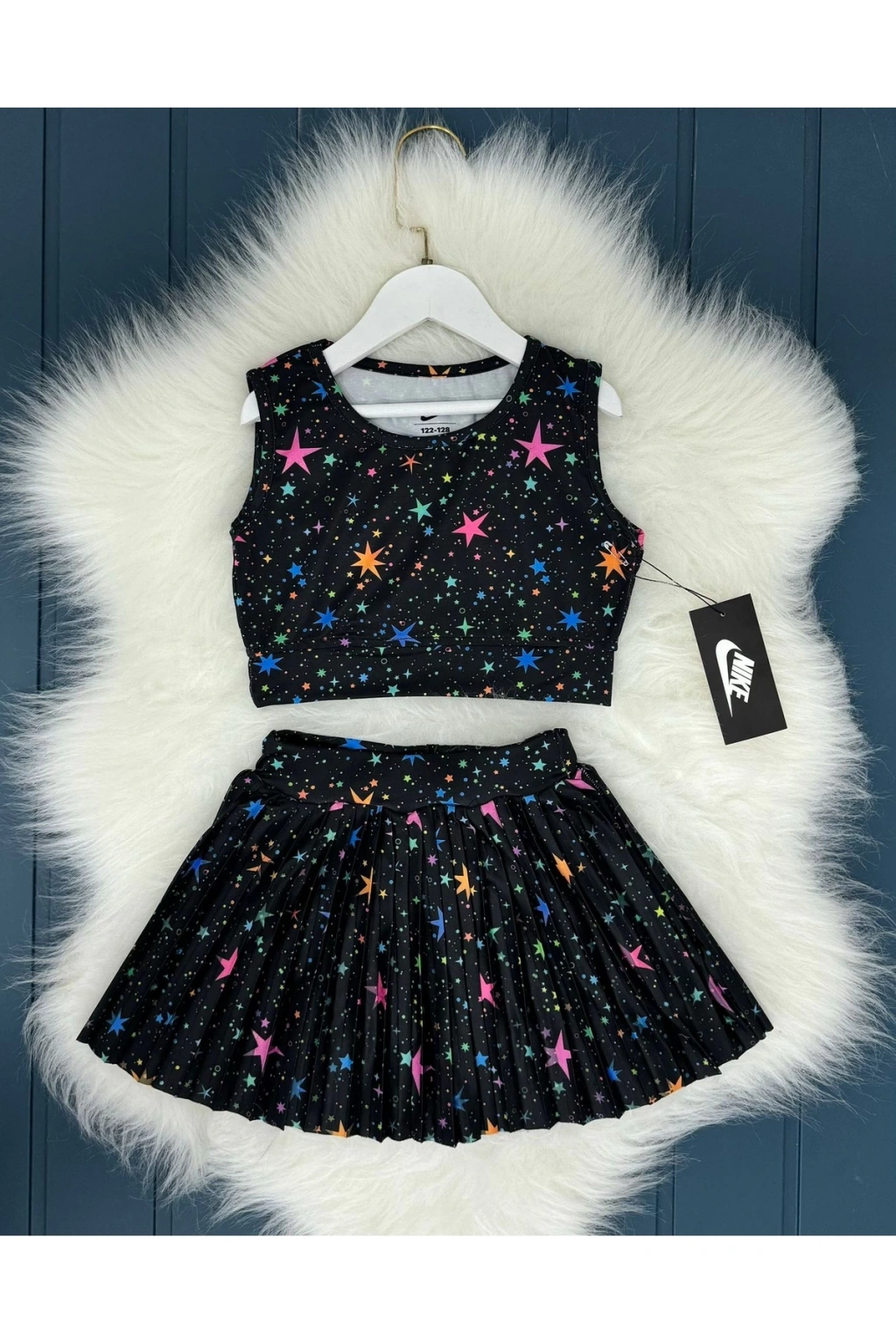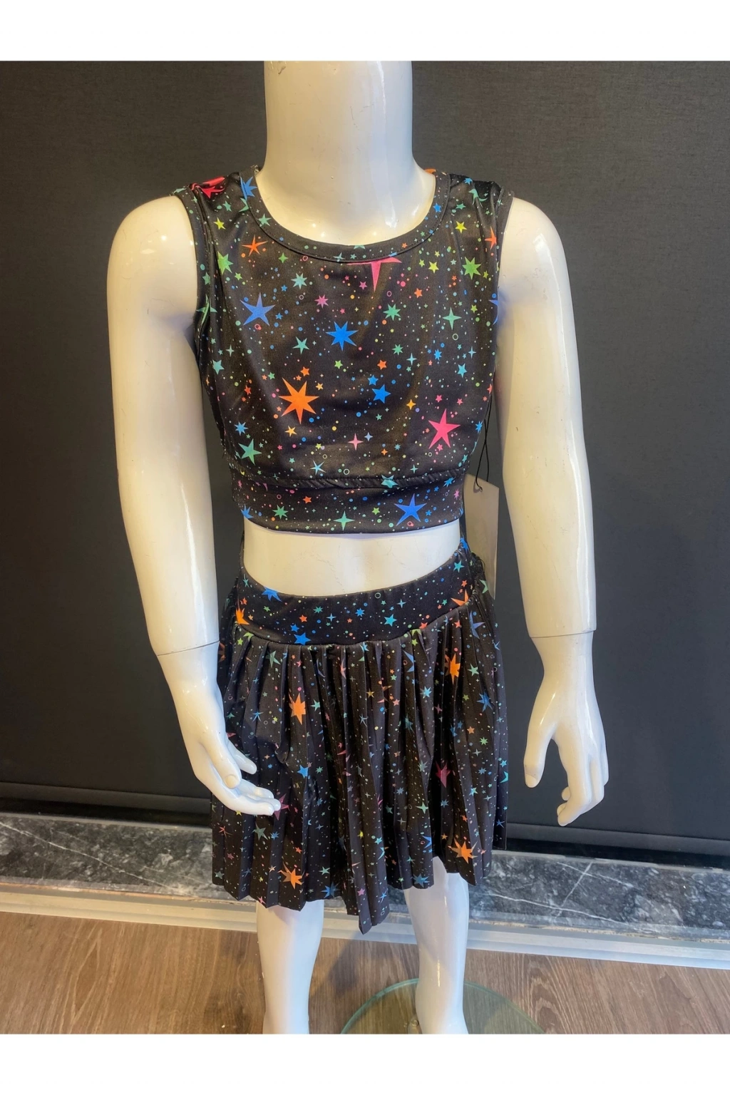 Kız çocuk günlük crop yıldız desen siyah şortlu etek boxer canlı renkler spor crop alt üst takım