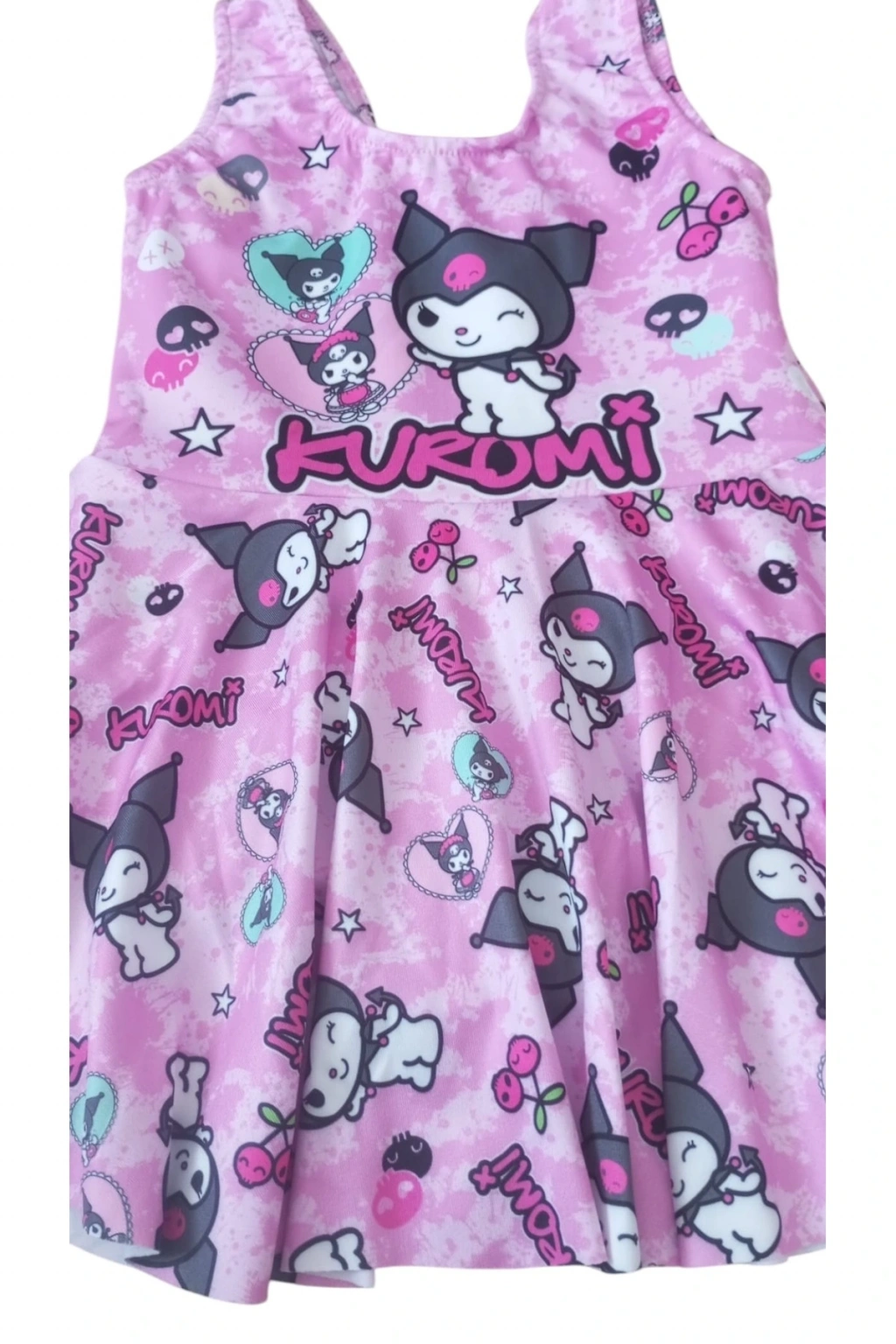 - Canlı pembe rengiyle dikkat çeken bu mayo takımı, yaz aylarında çocukların enerjisini yansıtır.; - Kız çocuklarına özel tasarlanmış olan bu takım, Kuromi baskısı ile eğlenceli bir görünüm sunar.; - Kolay giydirilebilen kolsuz üst parça ve su geçirmez özelliği sayesinde plajda veya havuz başında rahatlıkla kullanılabilir.; - Elastik materyali ile hareket özgürlüğü sağlayarak çocukların keyifli vakit geçirmelerine olanak tanır.; - Dalgıç/scuba dokuma tipi, dayanıklılığı artırırken aynı zamanda şık bir siluet oluşturur.; - Kısa silueti ile hem konforlu hem de stil sahibi bir görünüm kazandırır.; - Sürdürülebilir malzemelerden üretilmiş olup çevre dostu bir tercih sunar.; - Paket içeriği 2 parçadan oluşur; böylece hem üst hem de alt parça olarak ihtiyacınız olan her şey tek pakette bulunur.; - Normal arka açıklığı sayesinde rahat hareket edebilme imkanını arttırır.; - U yaka üst silueti ile modern ve şık bir görünüm sağlar.; - Plaj tekstil koleksiyonuna ait bu mayo takımı, yaz gardrobunuzda vazgeçilmez bir parça haline gelir.; - 5-6 yaş bedeniyle genç kızların büyüme dönemlerinde de idealdir.; - Etekli tasarım detayı ile farklılık yaratırken aynı zamanda pratik kullanım sunar.; - Külot alt silueti sayesinde konforlu bir deneyim yaşatır.; - Kadın/kız cinsiyetine hitap eden bu ürün, beachwear ortamları için idealdir.; - Poliamid materyali hızlı kuruyan özellikte olup suyun içinde veya dışında rahatlıkla tercih edilebilir.