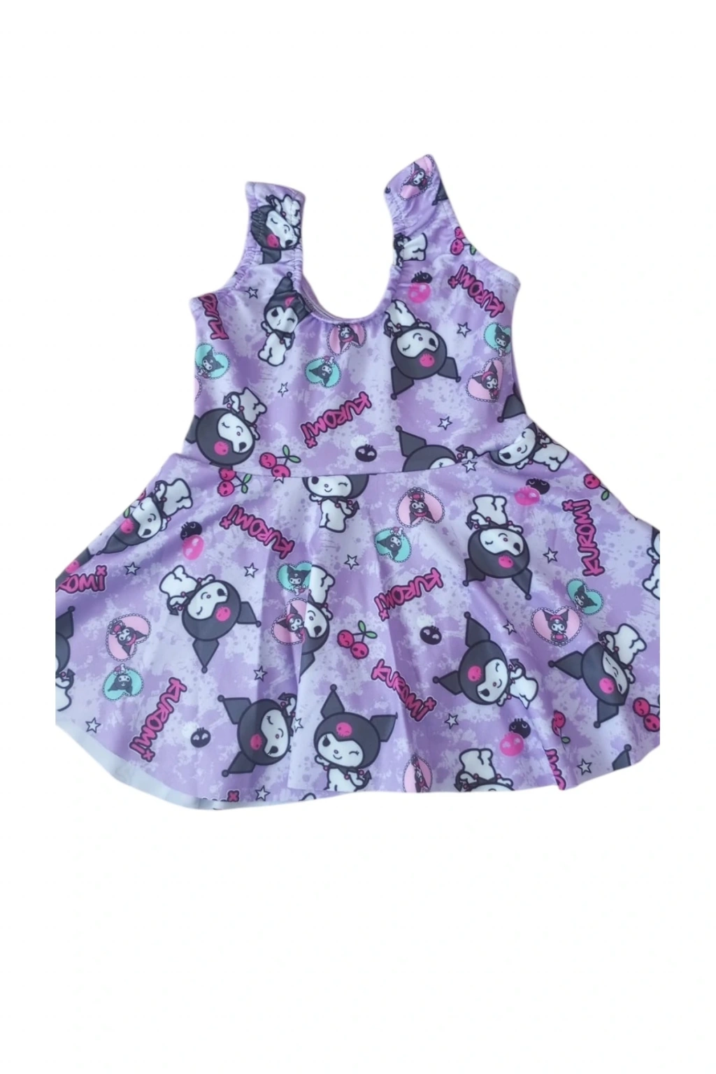 KIZ ÇOCUK KUROMİ BASKILI ELBİSE MAYO BONE TAKIM