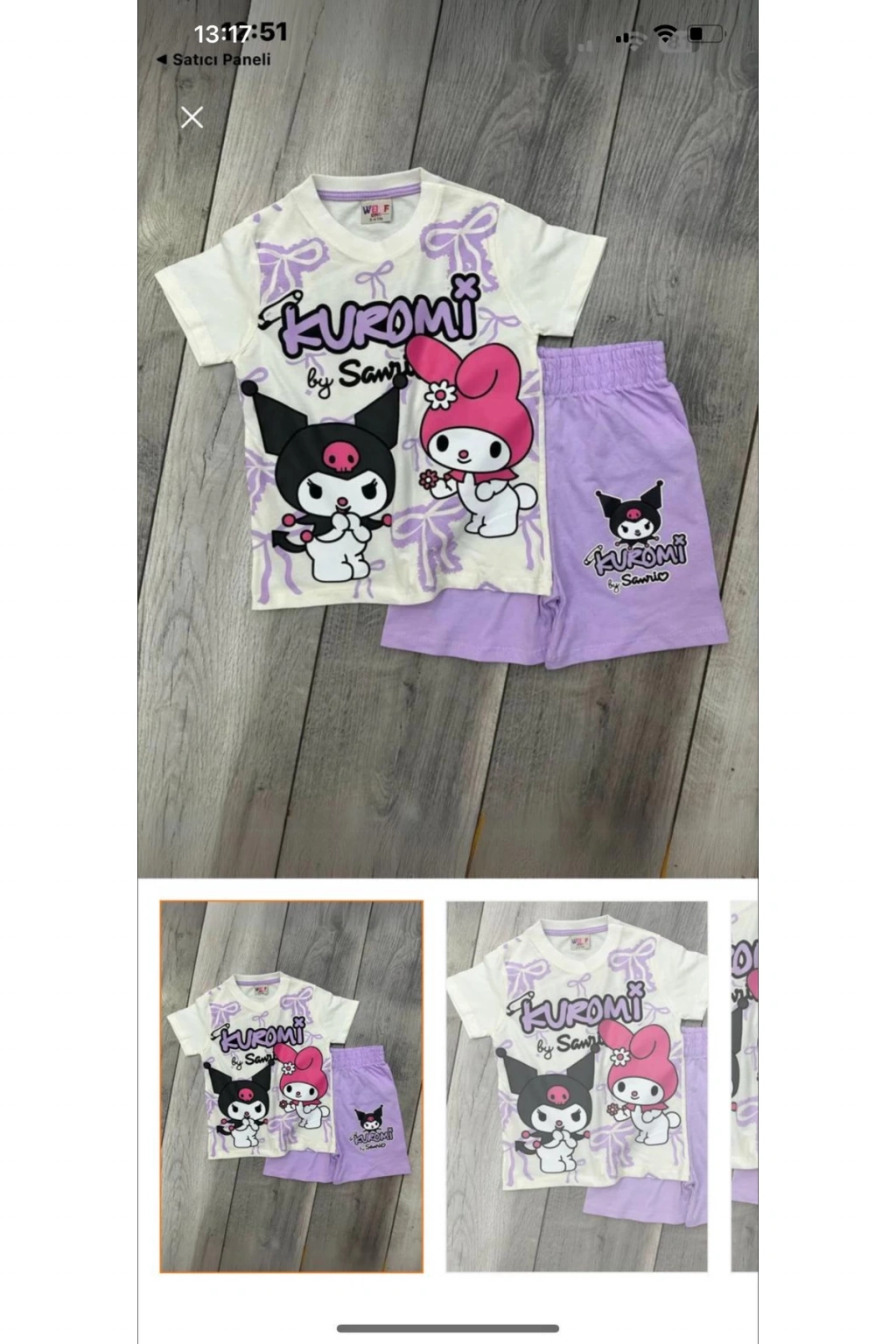 Kuromi Baskılı Alt Üst T-Shirt Şort Takım. Yazlık şortlu takım. % 100 Pamuk Alt Üst Takım