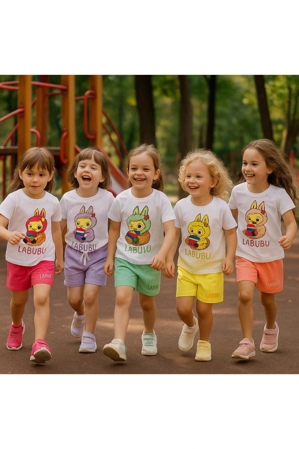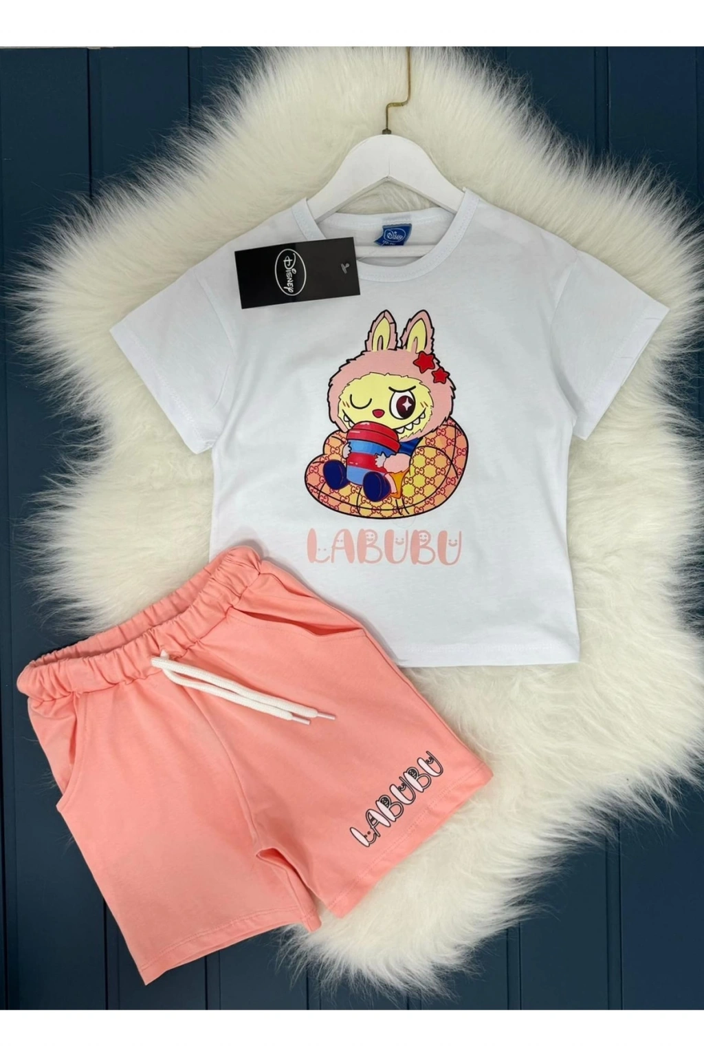 Kız çocuk LABUBU desen Kısa Kollu Yazlık Şortlu Alt Üst Takım