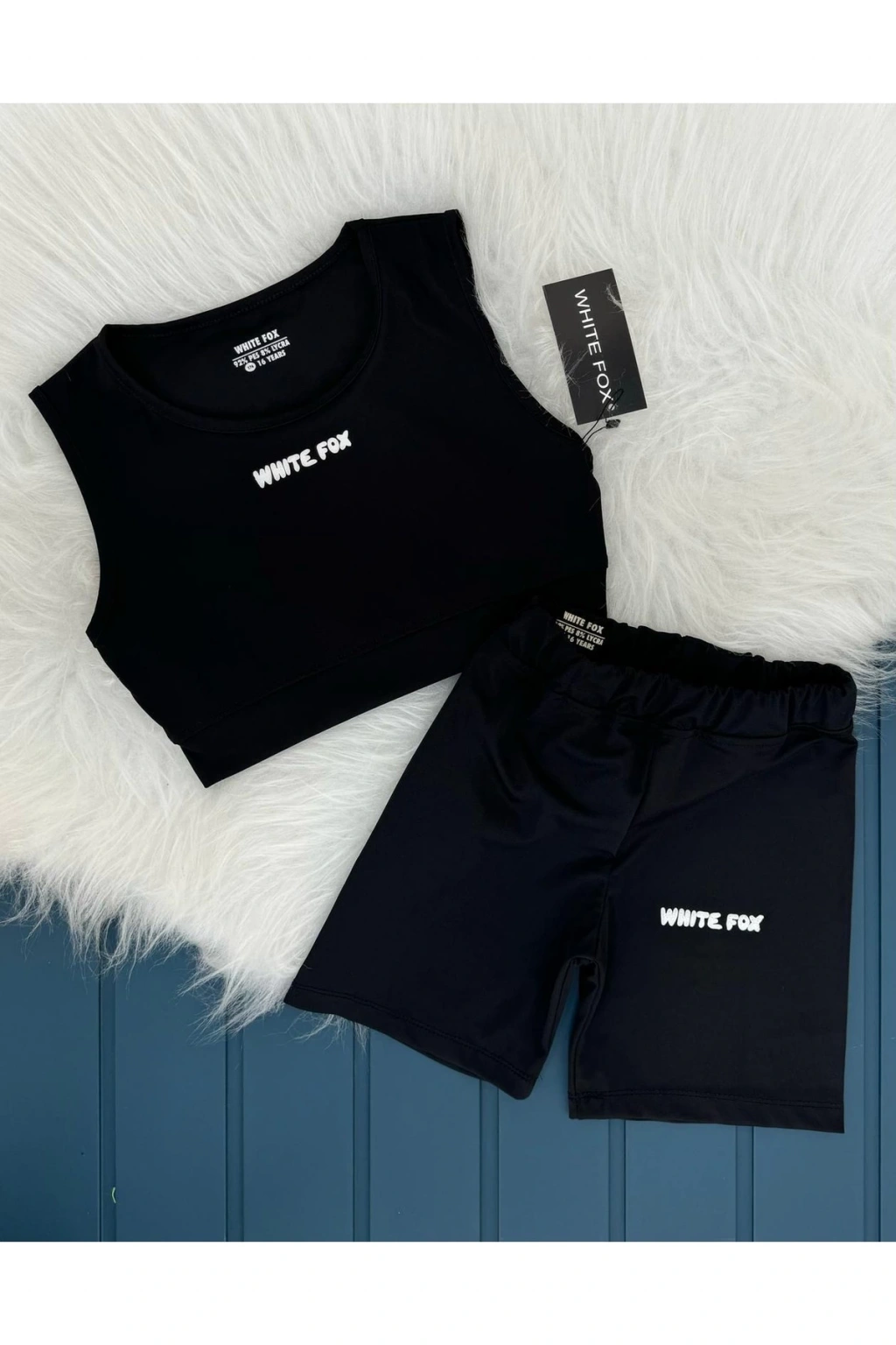 Kız çocuk günlük crop yıldız desen siyah şortlu etek boxer canlı renkler spor crop alt üst takım