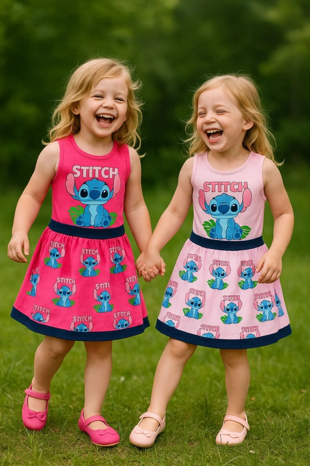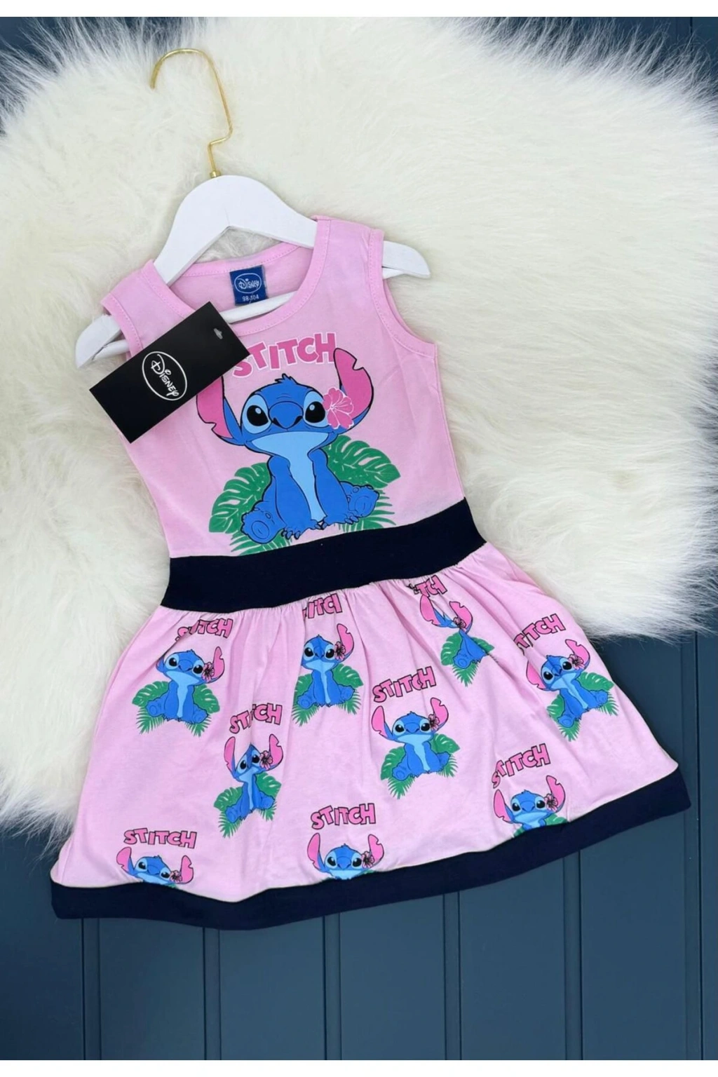 Kız Çocuk Pamuklu Açık Pembe Renk STİHCH karakter baskılı yazlık günlük elbise