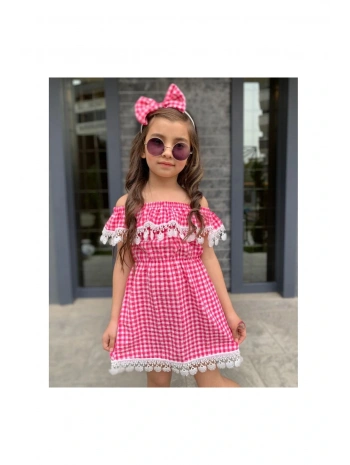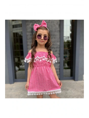 Kız Çocuk Güpürlü Ekose Elbise