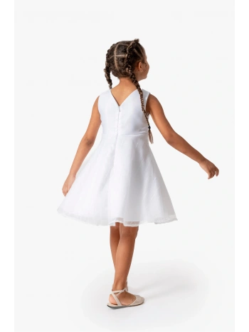 Yakadan Büzgülü Tül Kız Çocuk Elbisesi