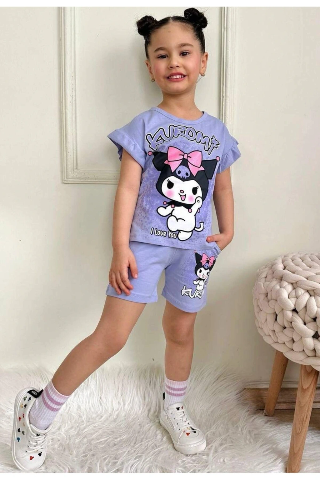 Kız Çocuk Trend Baskılı Pamuk Yazlık Şort Takım