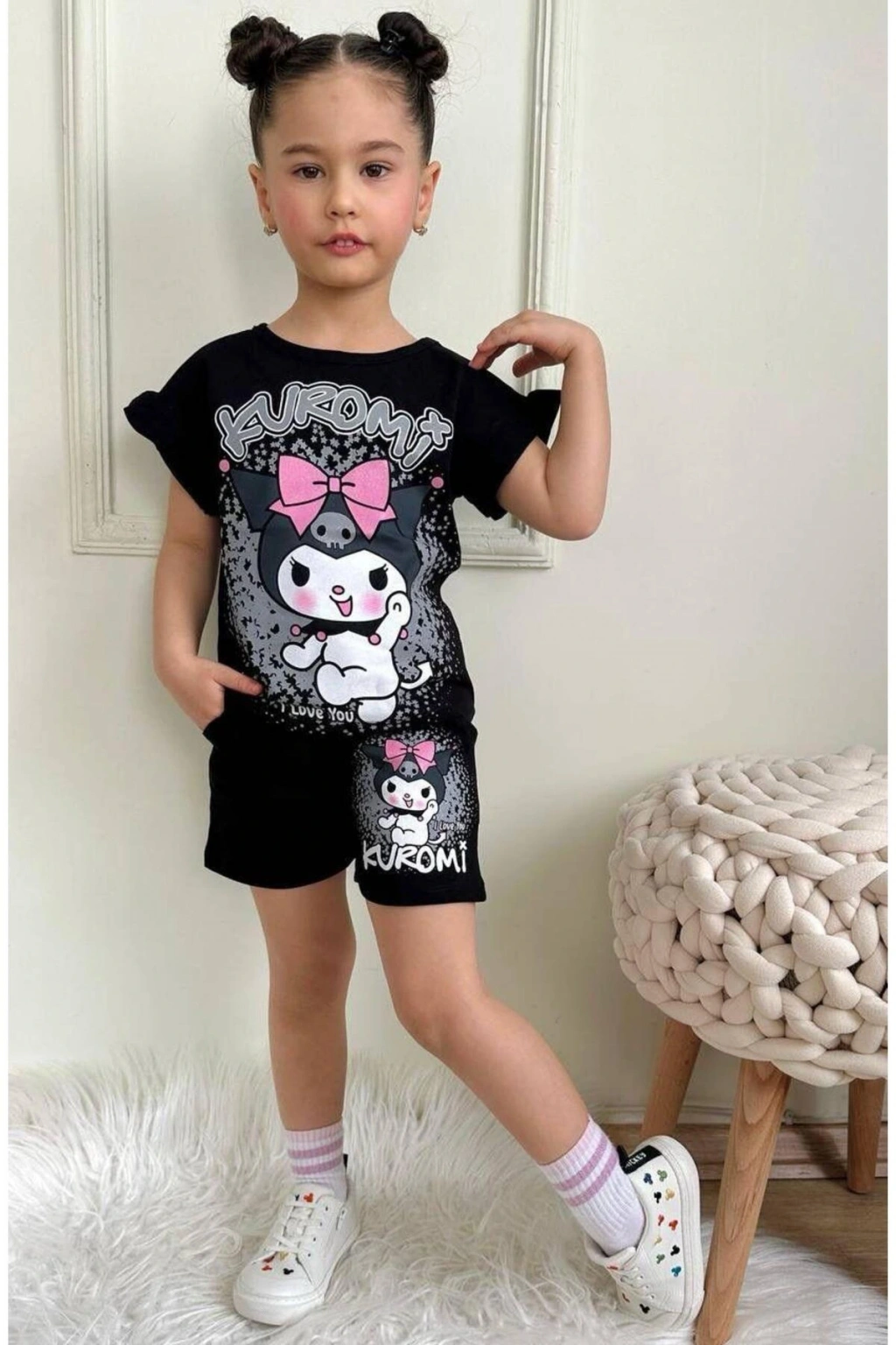 Kuromi Baskılı Alt Üst T-Shirt Şort Takım. Yazlık şortlu takım. % 100 Pamuk Alt Üst Takım