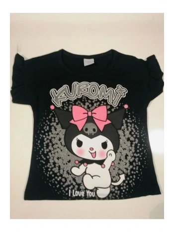 Kuromi Baskılı Alt Üst T-Shirt Şort Takım. Yazlık şortlu takım. % 100 Pamuk Alt Üst Takım