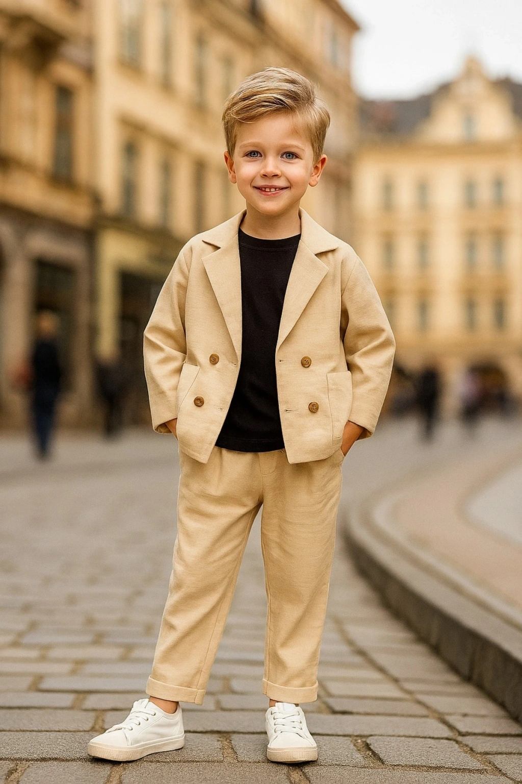 Erkek Çocuk ÜST KALİTE %100 PAMUK-Keten Salaş Ceket T-shirt Pantolon Üçlü Spor Takım Elbise 3’Parça