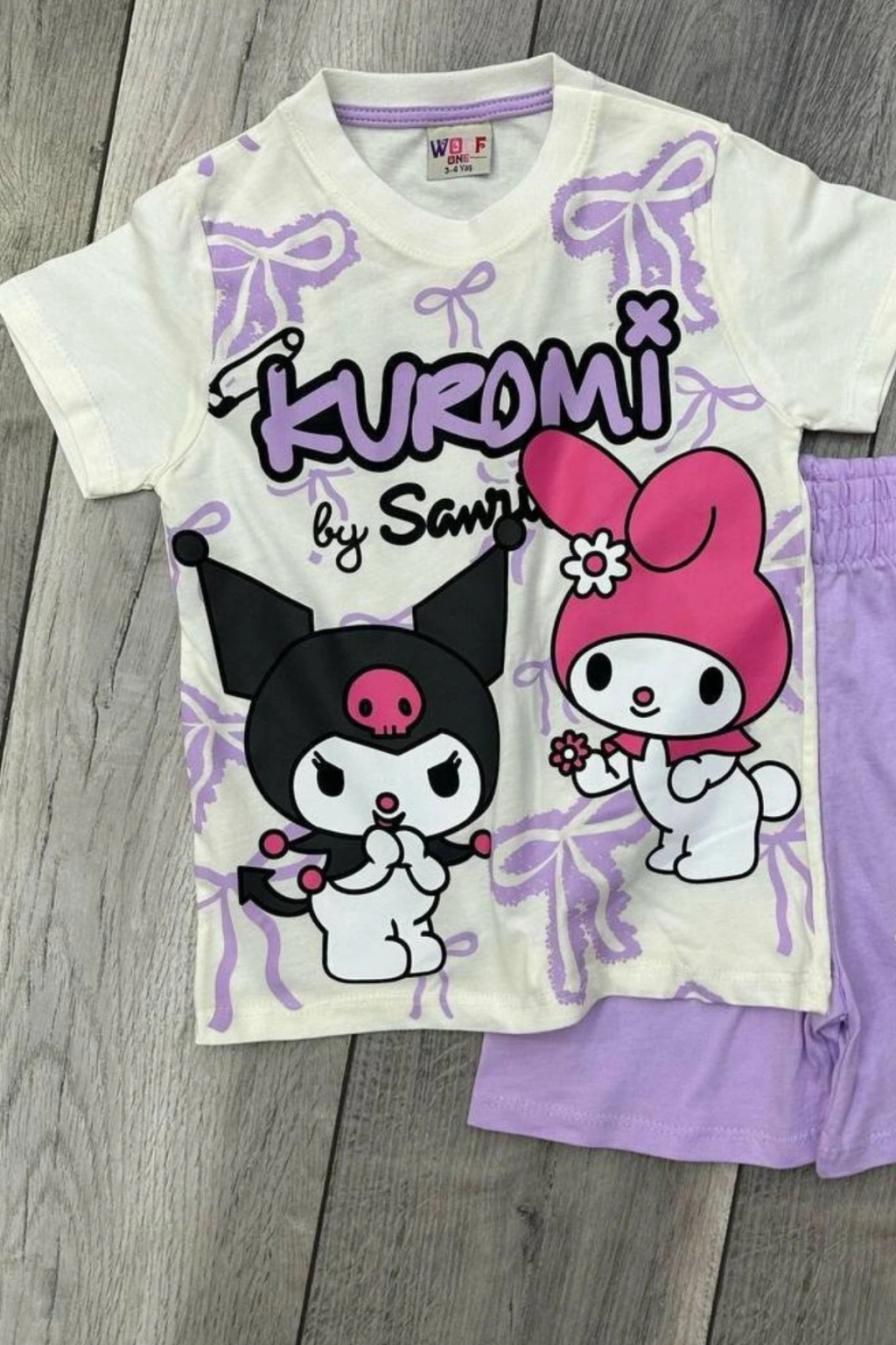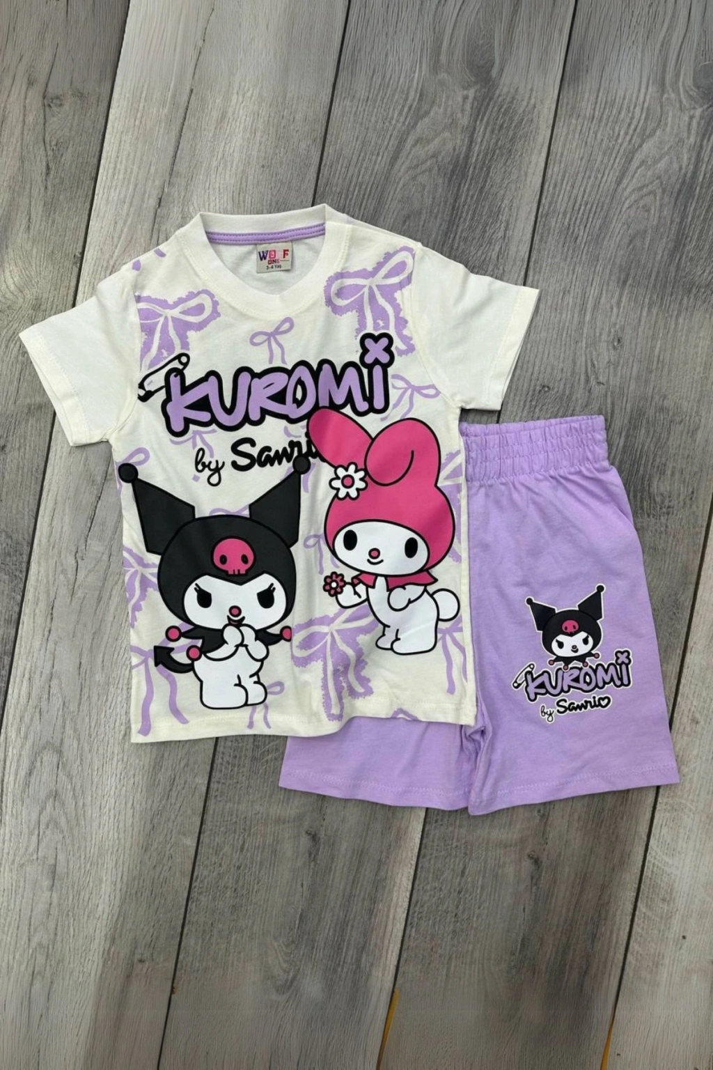 Kuromi Baskılı Beyaz Tişört ve Lila Renkli Şortlu Kız Çocuk Takım