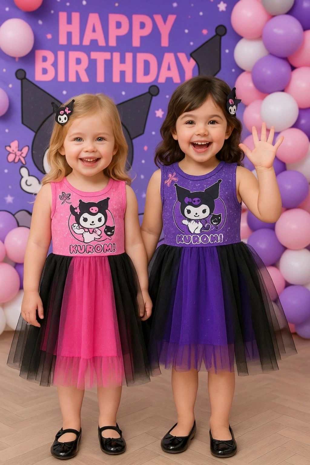 Kuromi Kız Çocuk Doğum Günü Parti Özel Gün Elbise (PEMBE RENK BİR BEDEN BÜYÜK TERCİH EDEBİLİRSİNİZ)