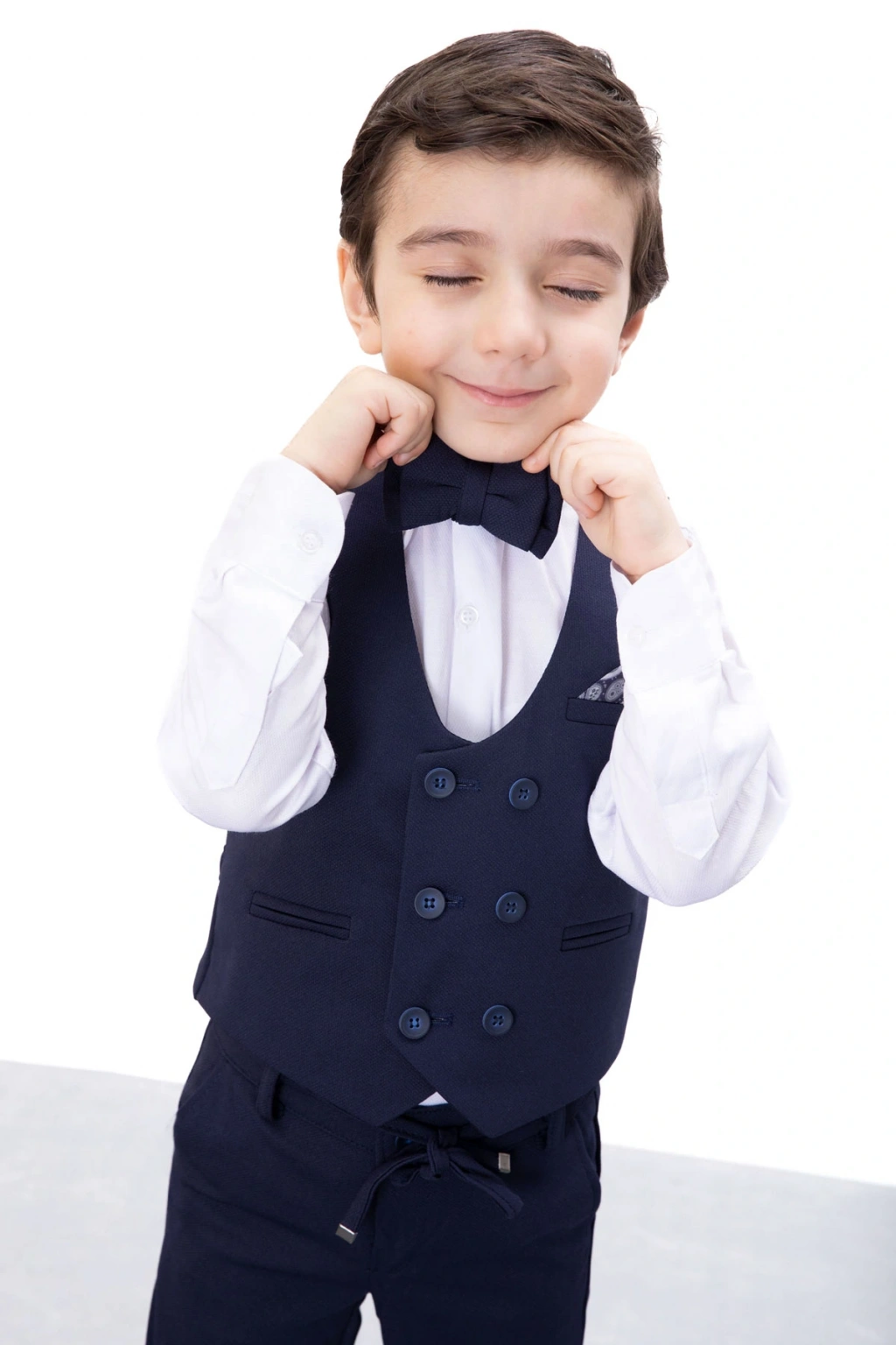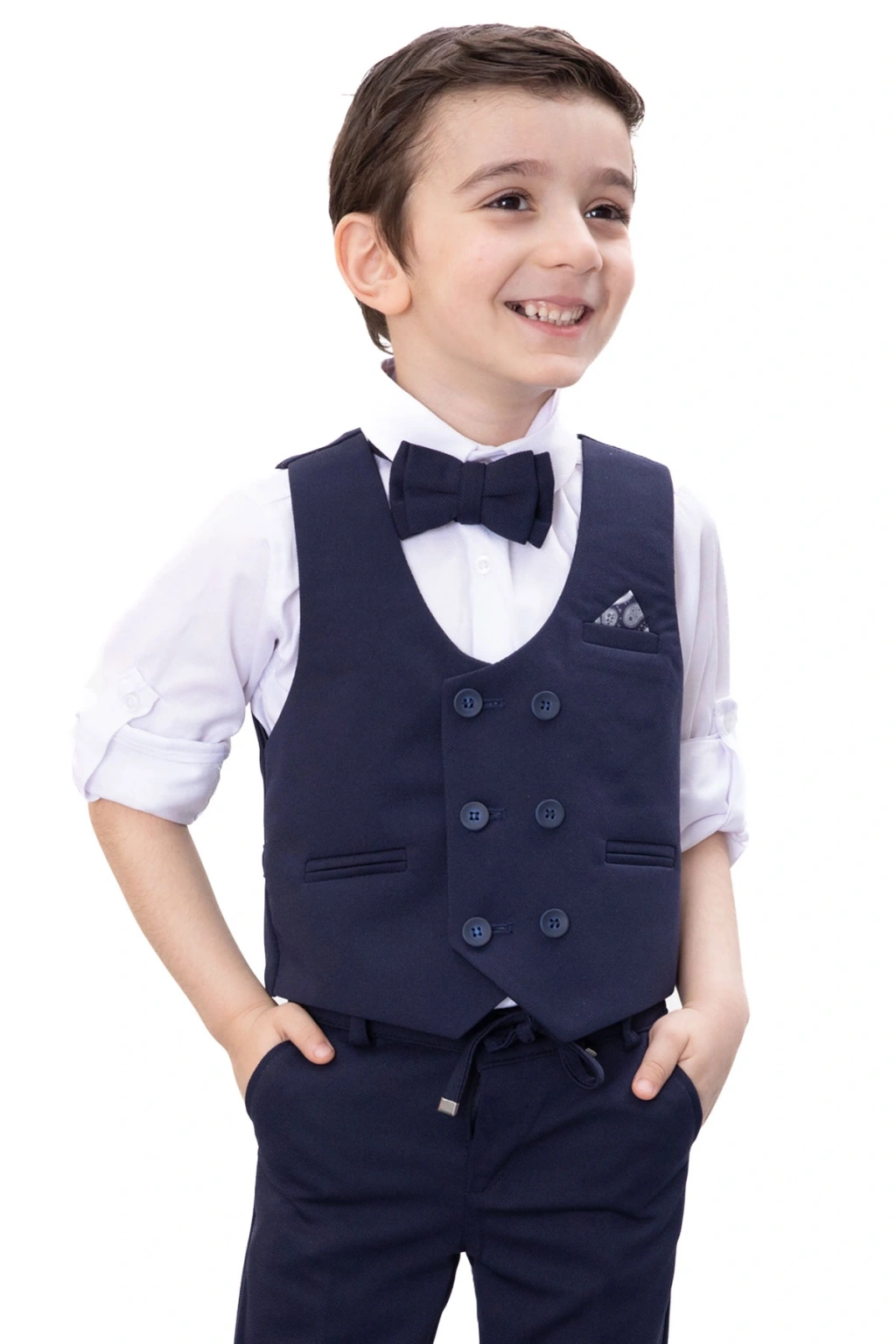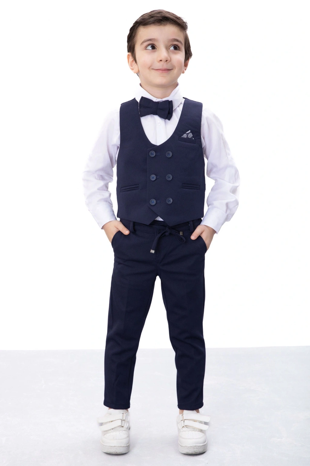 - Lacivert rengiyle şıklığı ve zarafeti çocuklarınıza taşıyan bu takım elbise, her ortamda göz alıcı bir görünüm sunar.; - Yüksek kaliteli pamuk materyali sayesinde çocukların cildine nazik dokunuşlar sağlar ve konforlu bir kullanım deneyimi yaşatır.; - Sivri yaka tasarımı ile modern ve klasik çizgiyi harmanlayan bu takım elbise, genç erkeklerin tarzını yansıtır.; - Regular kalıp seçeneğiyle rahat hareket etme özgürlüğü sunarken, dar paça kesimiyle modern bir siluet oluşturur.; - Dokuma kumaş tipi dayanıklılığı artırarak uzun süreli kullanım imkanı tanır.; - Tüm sezonlarda tercih edebileceğiniz bu takım elbise, mevsim geçişlerinde de idealdir; standart kol ve truvakar kol detaylarıyla farklılık kazandırır.; - Young koleksiyonuna ait bu ürün, genç erkek çocukların enerjisini ve stilini ön plana çıkarmak için özel olarak tasarlanmıştır.; - Düz deseniyle sadelikten yana olanların beğenisini toplayacak olan bu takım elbise, günlük kullanımda da rahatlıkla tercih edilebilir.; - Doğal düğme detayları hem estetik hem de işlevsel avantajlar sunarak ürünün kalitesini arttırır.; - 4-5 yaş bedeniyle minik prenslerinize uygunluk göstererek onların ilk resmi kombinlerinden birini tamamlar.; - Cansın Mini markasının güvencesi altında üretilmiş olup, kalite standartlarına uygun şekilde hazırlanmıştır.; - Güvenli alışveriş deneyimi için ithalatçı firma tarafından temsil edilmekte ve müşteri memnuniyeti odaklı hizmet vermektedir.