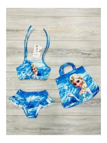 Prenses Elsa desenli kız çocuk bikini 3lü kombin