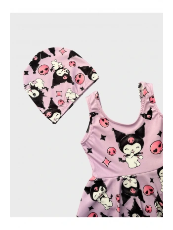 Kız çocuk Kuromi volanlı boneli mayo