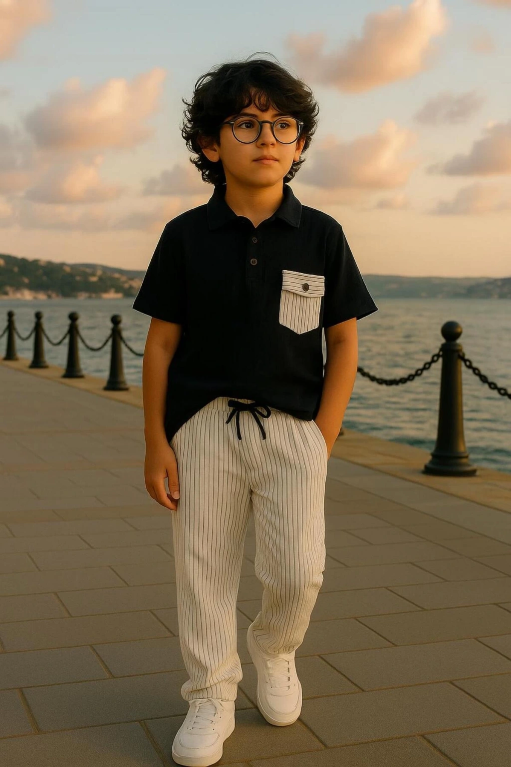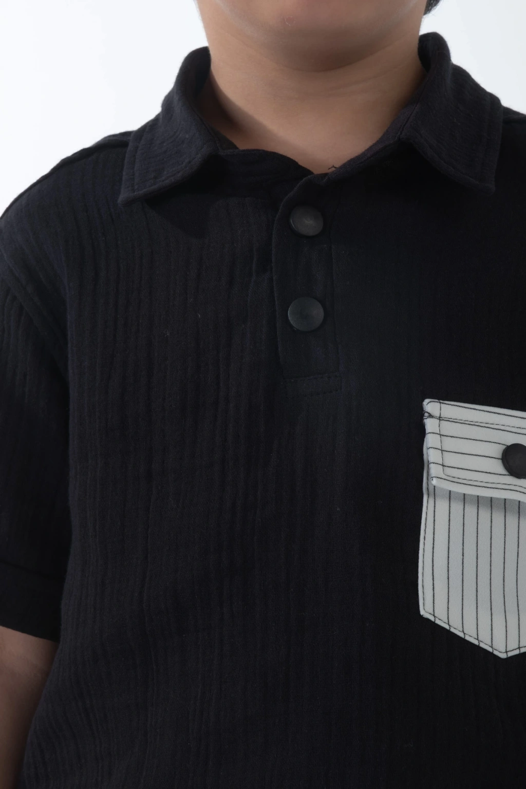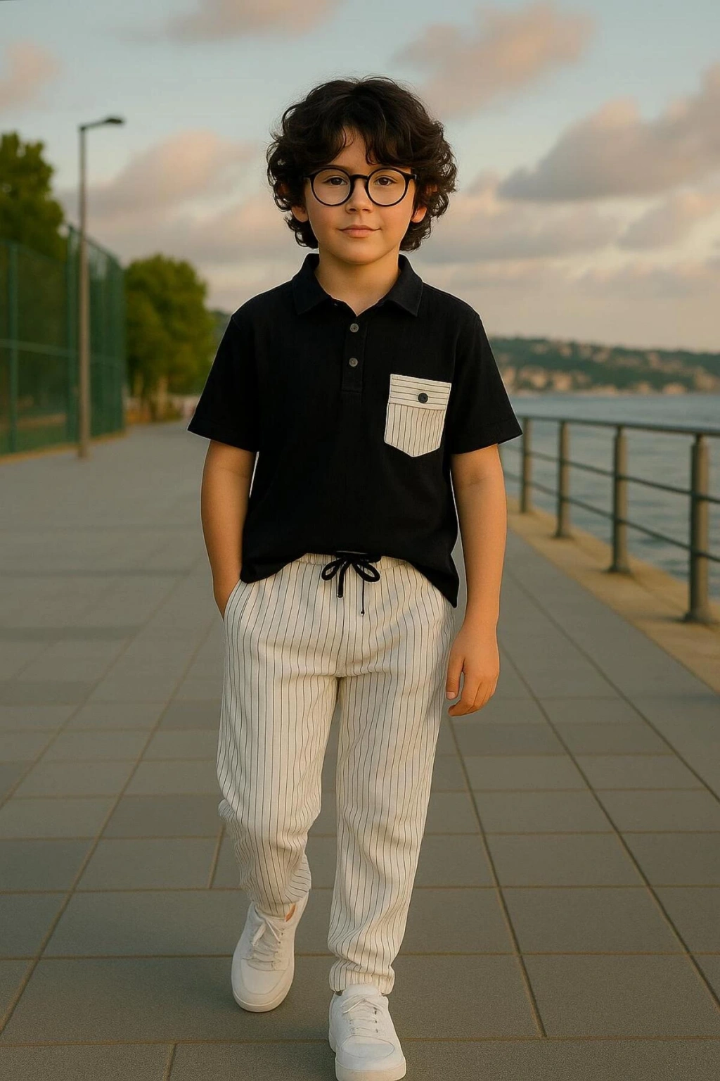- Rahat ve şık bir yazlık spor takım 5 - 14 yaş arası çocuklar için idealdir.; - Müslin kumaştan üretilmiş olup, nefes alabilir yapısıyla gün boyu konfor sağlar.; - Polo yaka tasarımı ile modern ve dinamik bir görünüm sunar.; - Yarım pat fermuar kapama özelliği sayesinde kolay giyilip çıkarılabilir.; - Çift cepli tasarım pratik kullanım imkanı tanırken, boru paça kesimiyle trend bir stil oluşturur.; - Orta kalınlıkta pamuklu materyali ile mevsim geçişlerinde de rahatlıkla tercih edilebilir.; - Sade ve düz deseniyle her türlü aksesuarla kombinlenebilir; siyah rengi ise zamansız bir seçimdir.; - Bağcıklı bel detayı hem şıklığı artırır hem de ayarlama imkanı sağlar.; - Kısa kollu üst parça ile yaz aylarında serinlik hissi verirken, alt pantolon rahat hareket etme özgürlüğü sunar.; - Şık ve gece koleksiyonuna ait bu takım, günlük kullanım için idealdir.; - Bağcıklı kemer detayı ile belinizi vurgulamanız mümkündür.