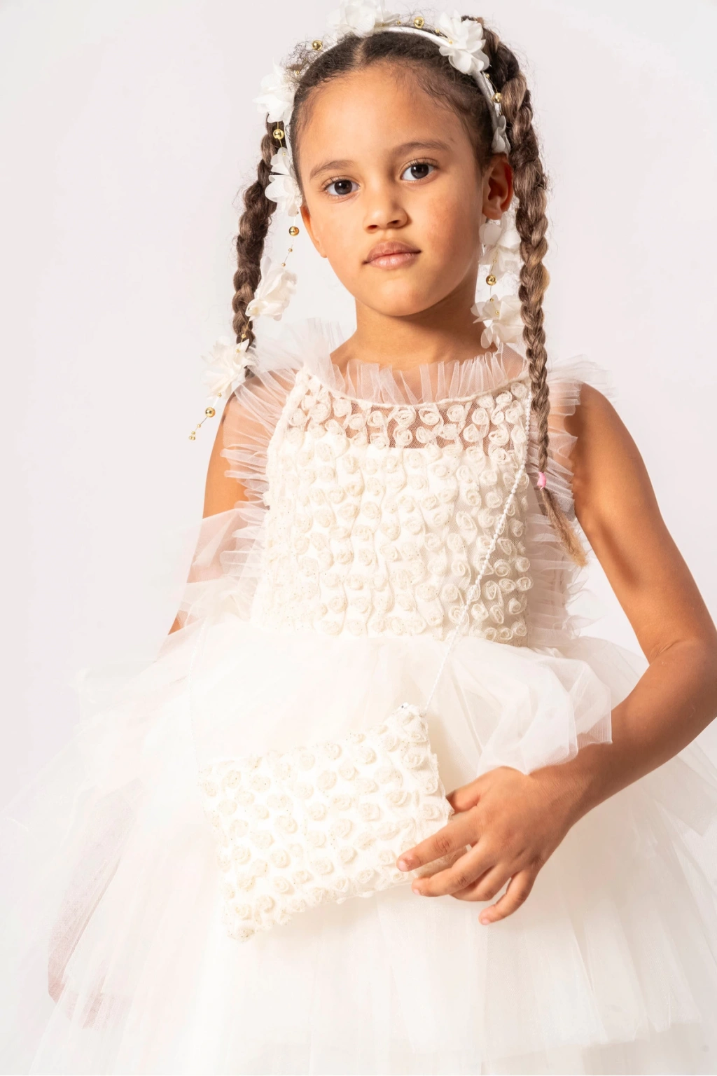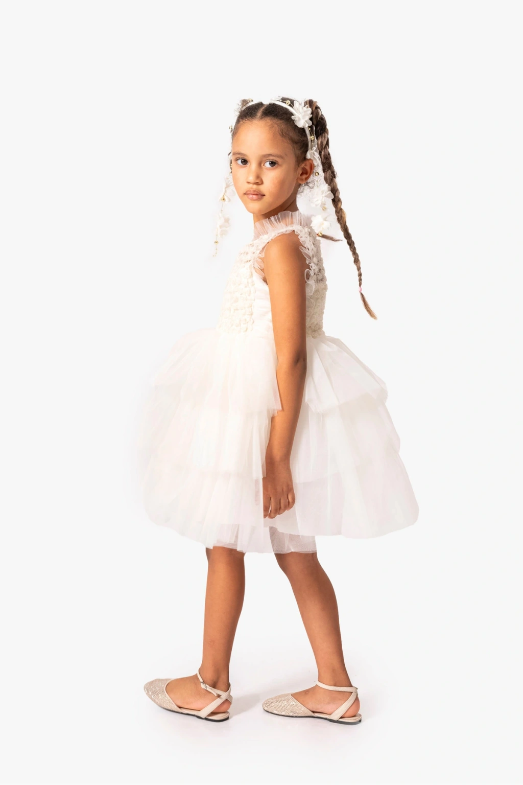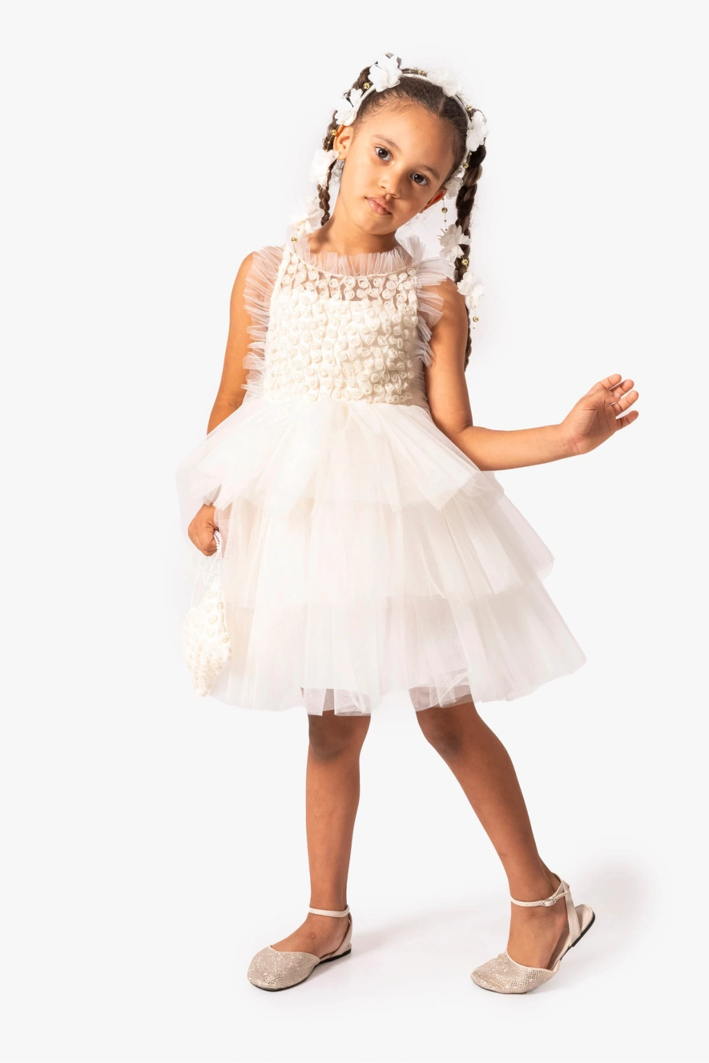 - Midi boy kesimi ile hem şık hem de rahat bir kullanım sunar.; - Regular kalıbı sayesinde her bedene uyum sağlar ve konforlu bir deneyim yaşatır.; - Tül kumaşı, hafif ve zarif bir dokunuşla elbiseye romantik bir hava katar.; - Çocuklar için özel olarak tasarlanmış olup, onların hareket özgürlüğünü kısıtlamaz.; - Kolsuz tasarımı ile yaz aylarında serinlik ve rahatlık sağlar.; - Dik yaka detayı ile modern ve şık bir görünüm elde edilir.; - Düz deseni sayesinde sade ve zamansız bir stil yaratır; her türlü aksesuarla kolayca kombinlenebilir.; - Parti ortamları için idealdir; göz alıcı bir görünüm sunar.