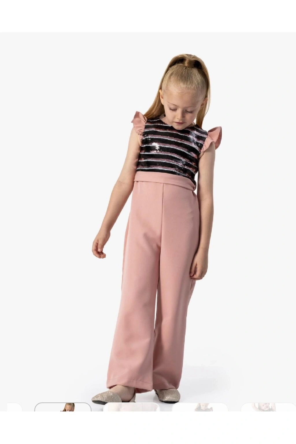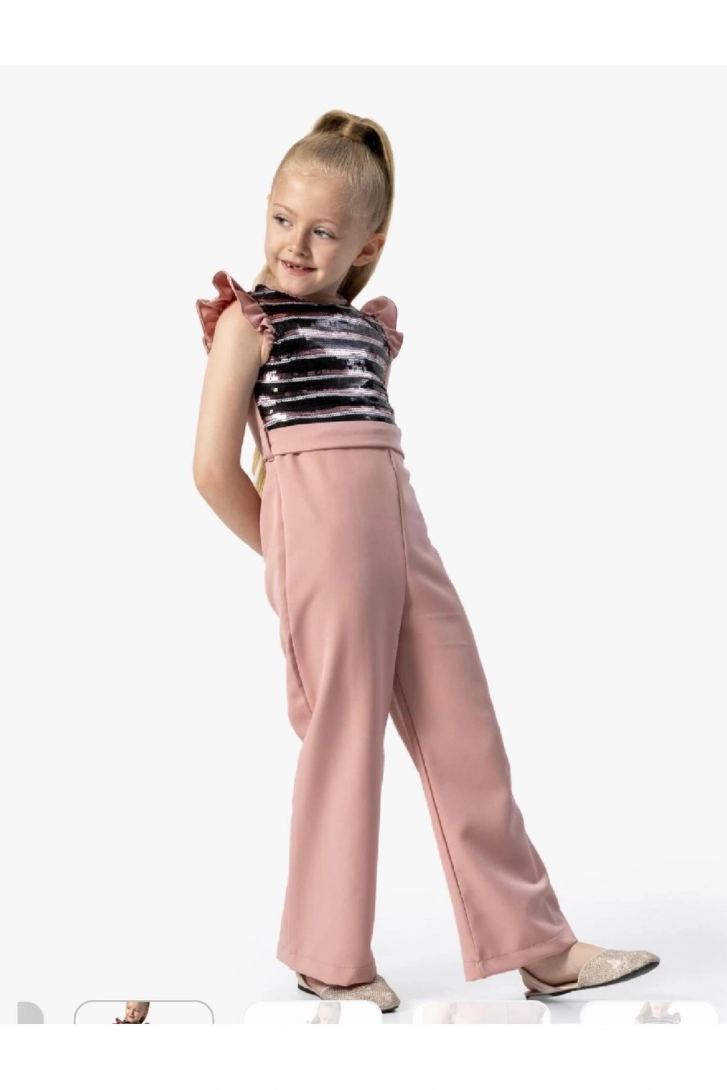 Pembe Payetli Kız Çocuk Tulum Elbise