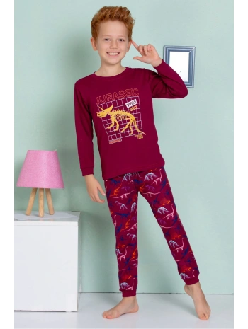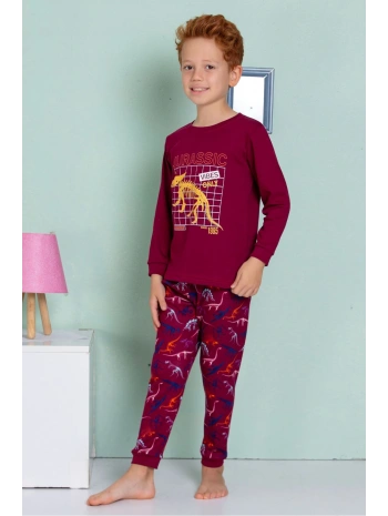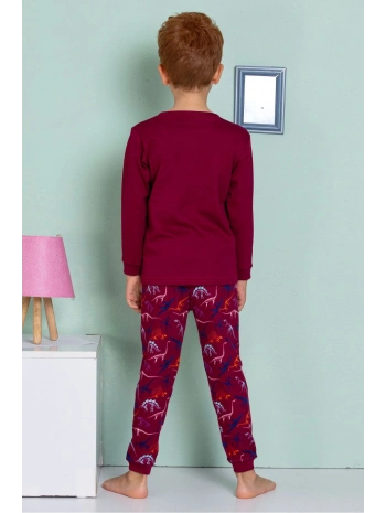 Elmas Kids Erkek Çocuk Timsah Desenli Bordo Rengi Desenli Pijama Takımı