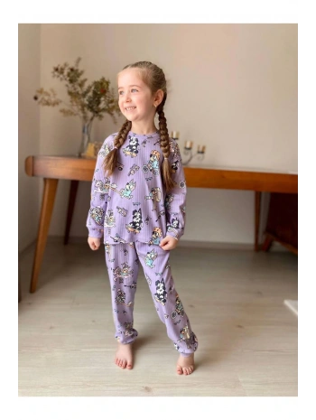 İSOB Lila Bluey Desenli Fitilli Kumaş %100 Pamuk Kız Çocuk Pijama Takımı 3-8 Yaş 31221-L
