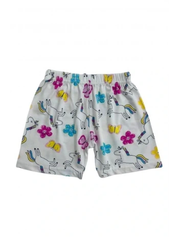 Kız Çocuk %100 Pamuklu Beyaz Unıcorn Kelebek Desenli Kısa Kollu Şortlu Yazlık Pijama Takımı