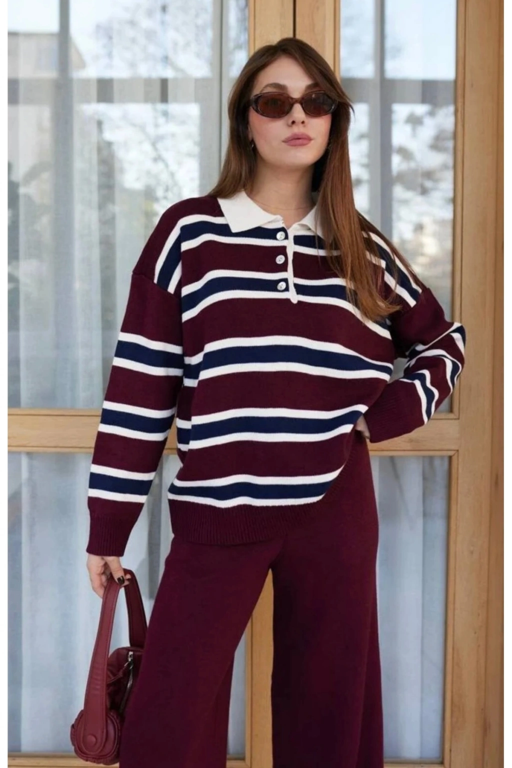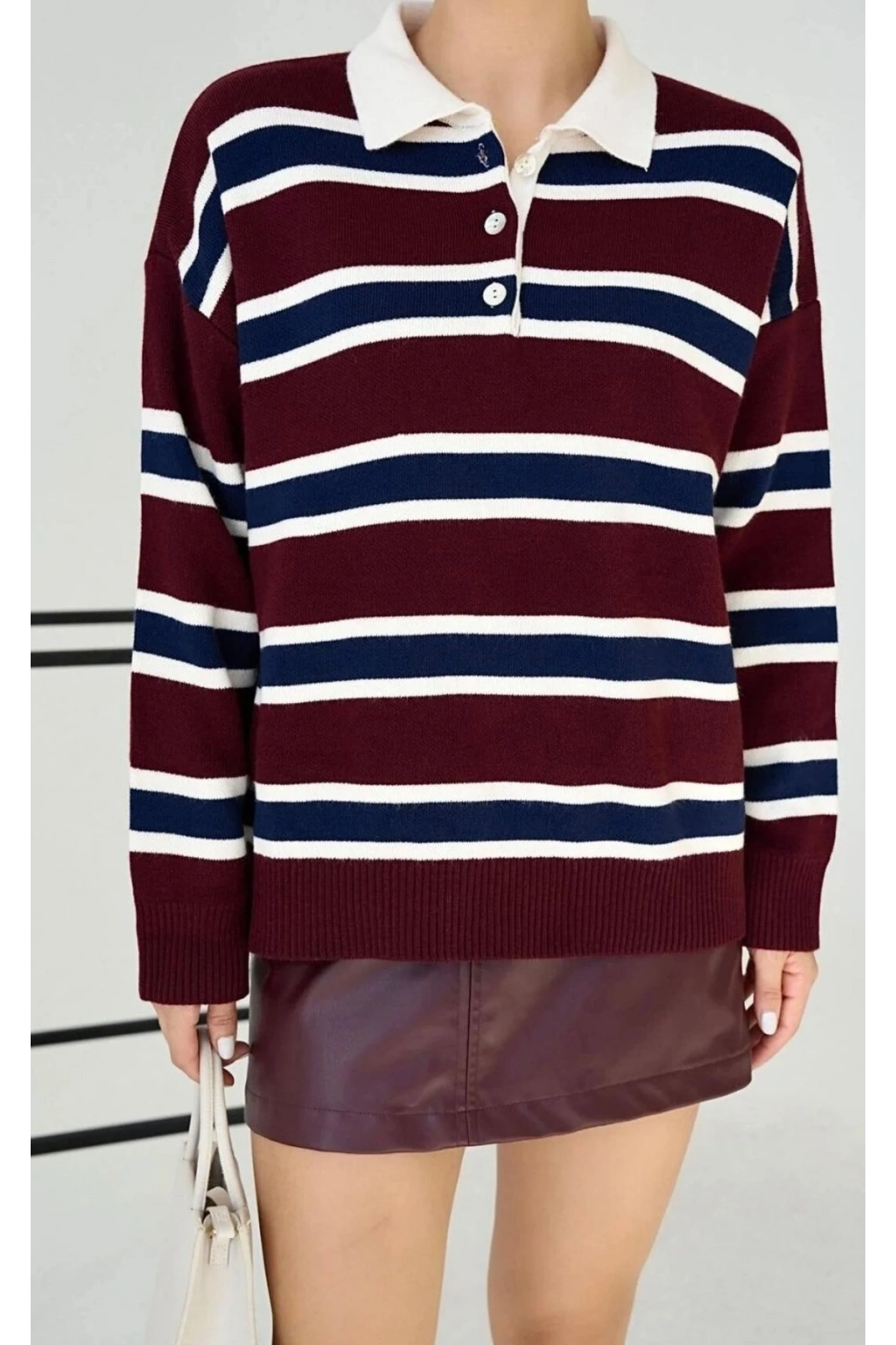 Polo Yaka Çizgili Kazak
