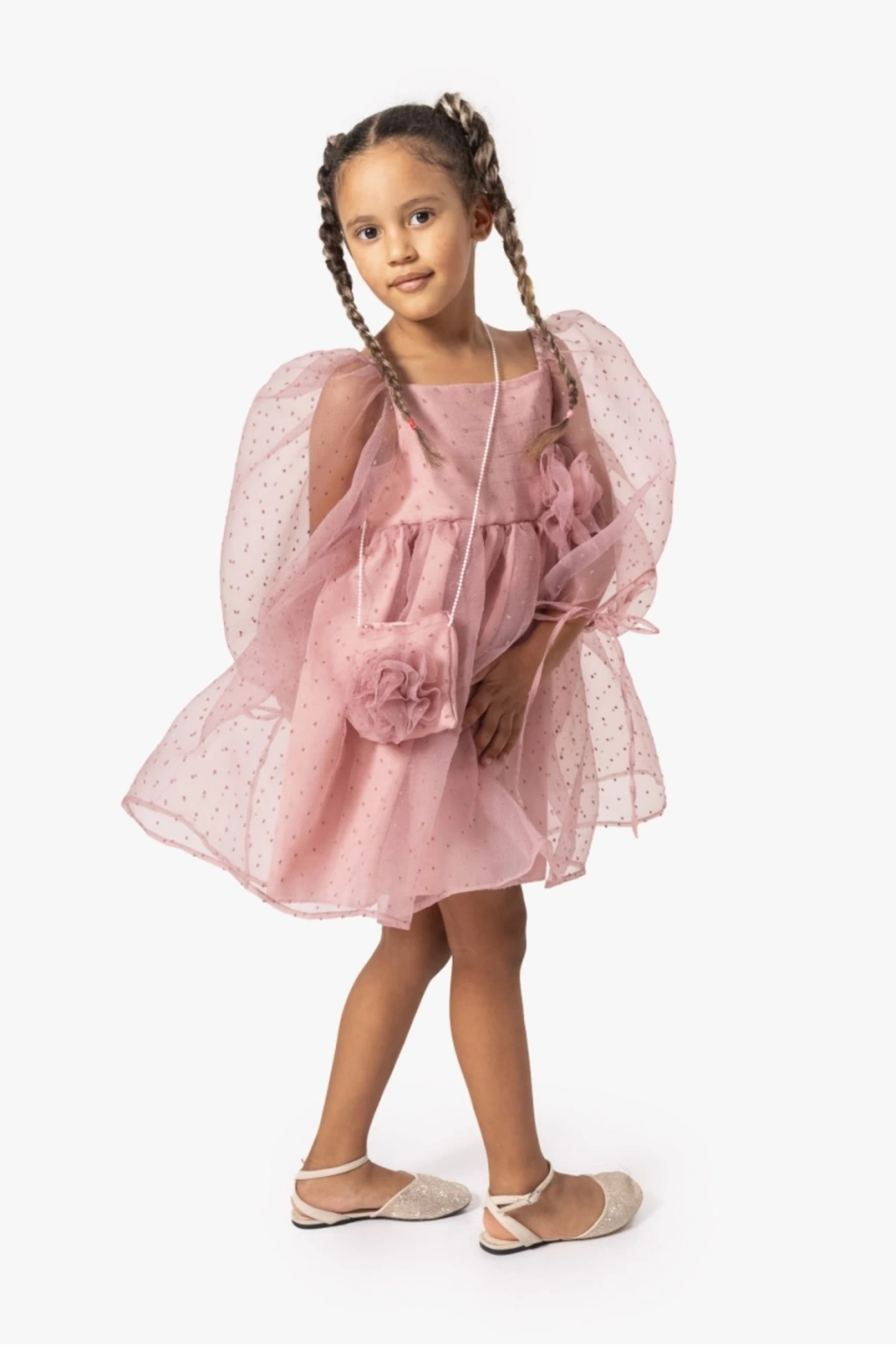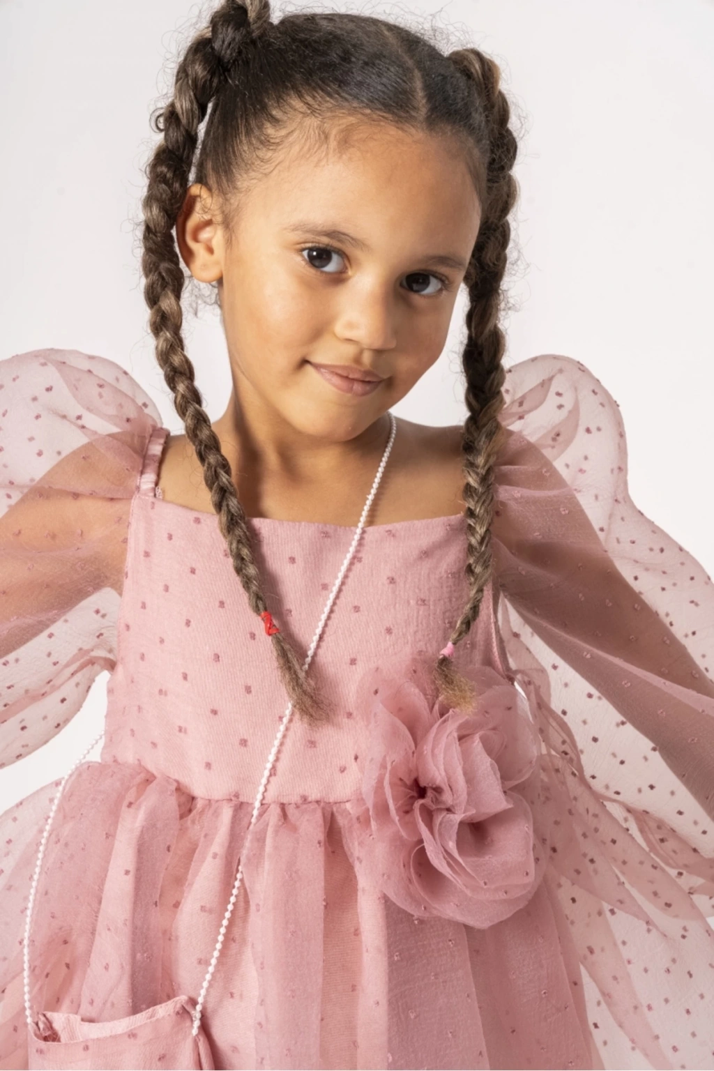 PEMBE GÜLLÜ KIZ ÇOCUK DOĞUM GÜNÜ VE ÖZEL GÜN ELBİSESİ