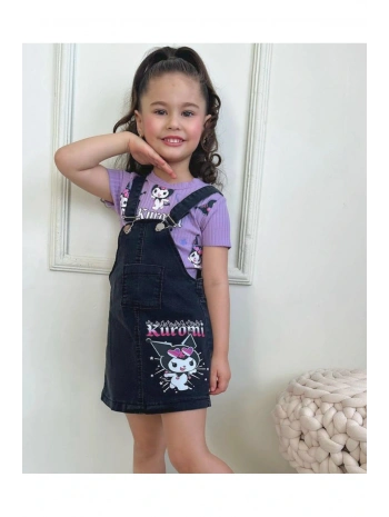 Kız Çocuk Kuromi Baskılı Thsort Denim Jile Salopet Takım