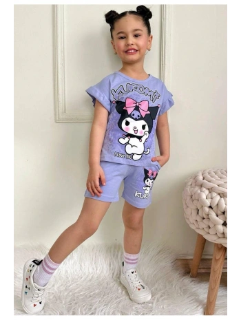 kız çocuk trend baskılı pamuk yazlık şort takım