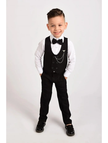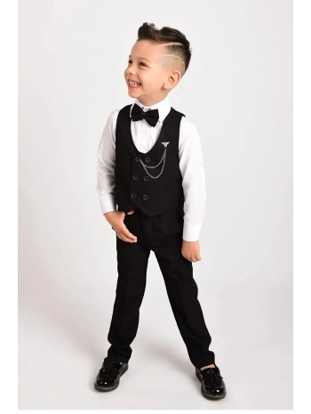 Erkek Çocuk Takım Elbise Yelekli Papyonlu