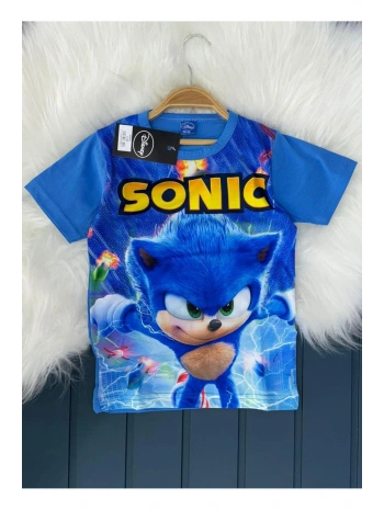 Sonic desenli dijital baskılı yazlık kısa kollu erkek çocuk üst t-shirt