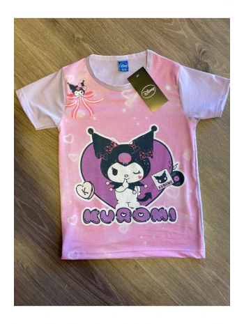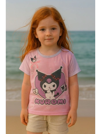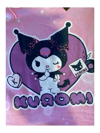 Kuromi desen dijital baskılı kız çocuk yazlık t-shirt üst giyim