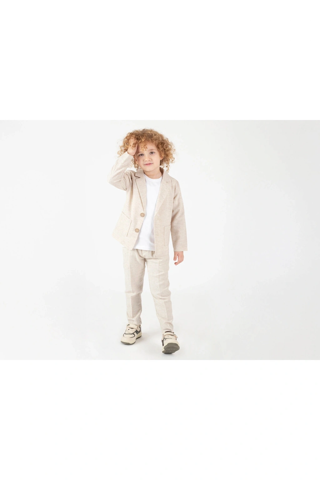 Erkek Çocuk ÜST KALİTE %100 PAMUK-Keten Salaş Ceket T-shirt Pantolon Üçlü Spor Takım Elbise 3’Parça