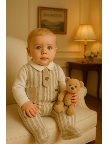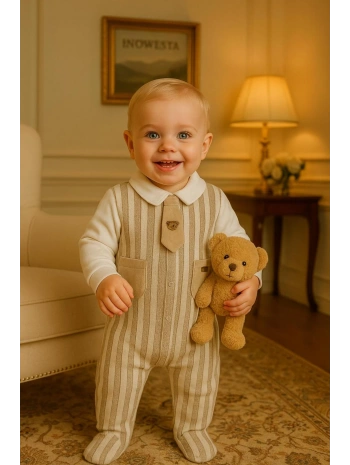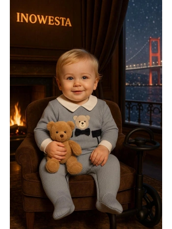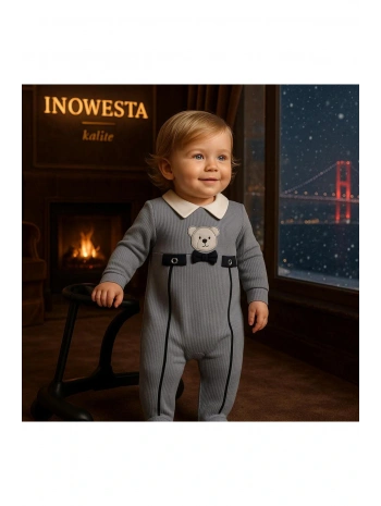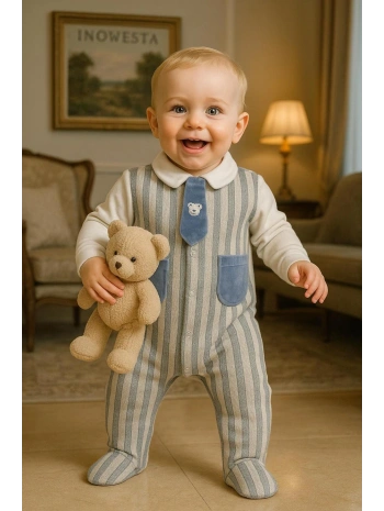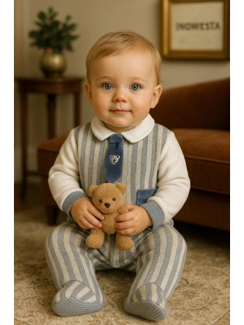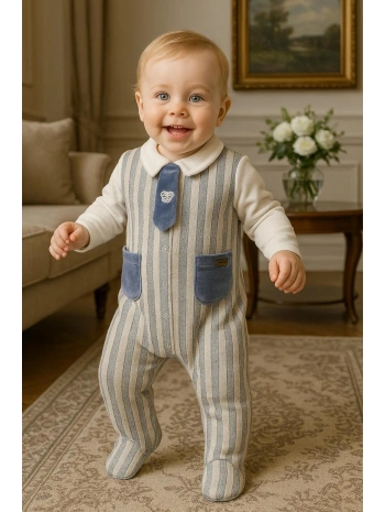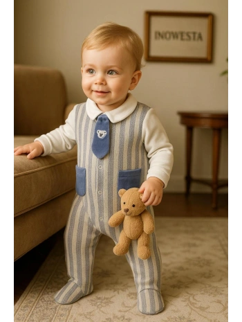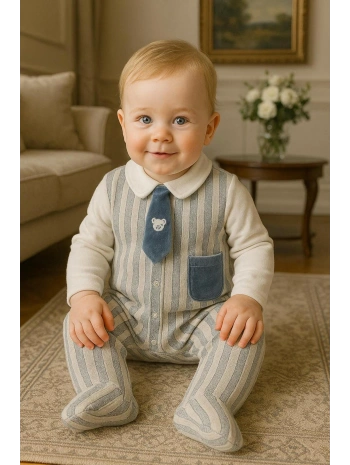 Erkek Bebek Pamuklu Kravatlı Triko-Kadife Garnili Tulum