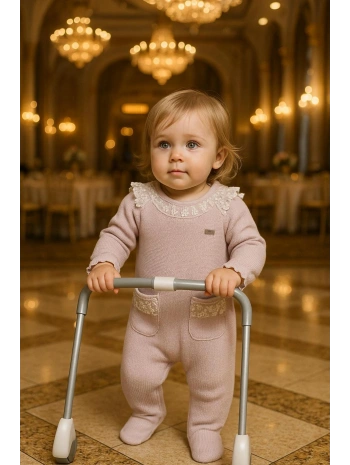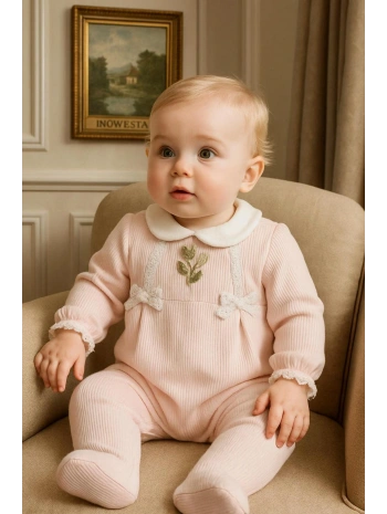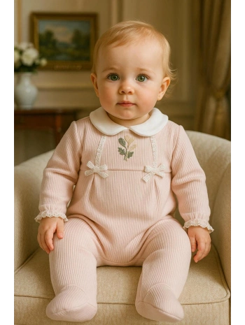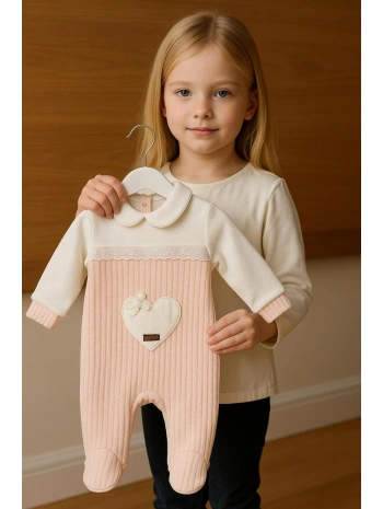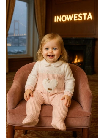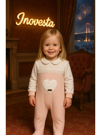 Kız Bebek Özel Aplike Nakışlı Kadife Üst Kalite Tulum