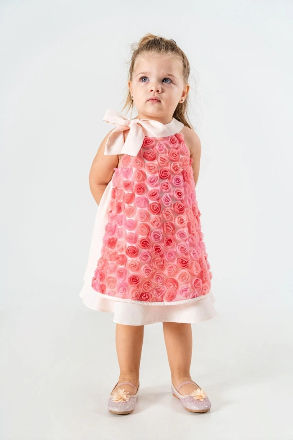 PEMBE GÜLLÜ KIZ ÇOCUK DOĞUM GÜNÜ VE ÖZEL GÜN ELBİSESİ - Pembe güllerle süslenmiş, şık ve neşeli bir tasarıma sahip, özel günler için ideal bir seçim.; - Jile kalıbı sayesinde rahat hareket etme özgürlüğü sunar ve çocukların konforunu ön planda tutar.; - Dokuma kumaş tipi, dayanıklılığı ve yumuşak dokusuyla çocukların cildine nazikçe dokunur.; - Çocuklar için özel olarak tasarlanmış, onların yaş grubuna uygun bir elbise modelidir.;