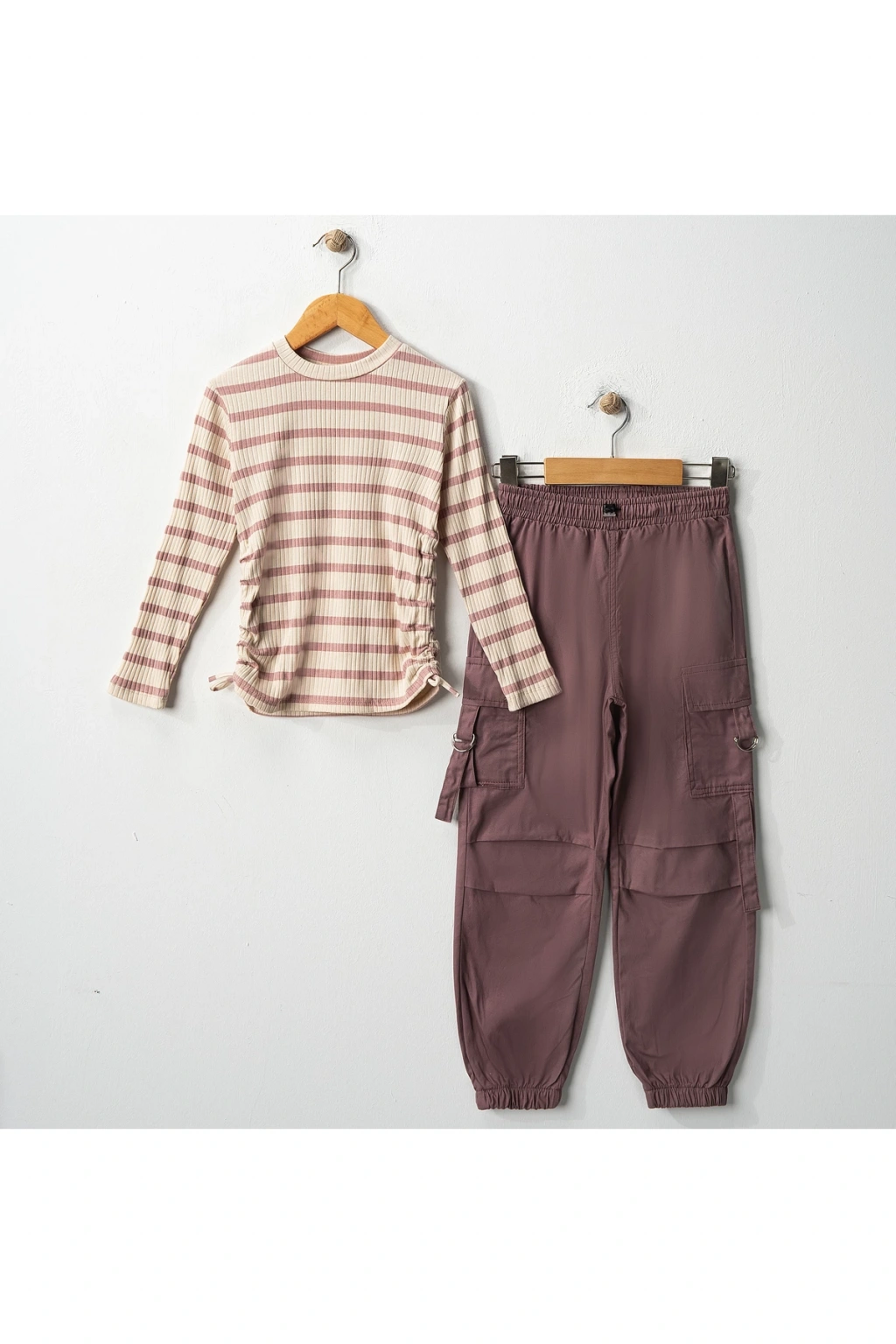 - Yandan büzgülü tasarımı ile modern ve şık bir görünüm sunar.; - Sürdürülebilir malzemeler kullanılarak üretilmiş olup çevre dostudur.; - Kemersiz yapısı sayesinde rahatlıkla giyilip çıkarılabilir.; - Körüklü cep detayları pratik kullanım sağlar.; - Lastikli bel tasarımı konforlu bir oturuş sunarken, hareket özgürlüğü tanır.; - İki parçadan oluşan set, hem üst hem de alt parça olarak tamamlanmıştır.; - Düz kesimiyle günlük kullanım için idealdir; rahatlığı ve şıklığı bir arada sunar.; - Kutusuz ambalajıyla minimalist bir paketleme tercih edilmiştir.; - Lastikli paça tasarımı modern bir siluet çizerken aynı zamanda kolayca giyilip çıkartılmasını sağlar.; - Astarlı olmayan yapısıyla hafif ve nefes alabilen bir yapıya sahiptir.; - Cool & comfort persona'ya uygun olarak tasarlanmıştır; gün boyu rahatlık hissi verir.; - Orta kalınlıktaki kumaşı mevsim geçişlerinde ideal koruma sağlar.; - Bisiklet yakası ile sade ama etkileyici bir stil oluşturur.; - İlkbahar/sonbahar sezonuna uygun olarak dizayn edilmiştir; mevsim koşullarına mükemmel şekilde adapte olur.; - Normal bel yüksekliği ile gün içindeki aktivitelerde maksimum konfor sunar.; - Çocuklar için özel olarak tasarlanmış olup genç tarza hitap eder.; - Kadın/kız cinsiyetine yönelik olarak üretilmiştir; her yaş grubundaki kadınların gardrobunda yerini alacak şekilde dizayn edilmiştir.