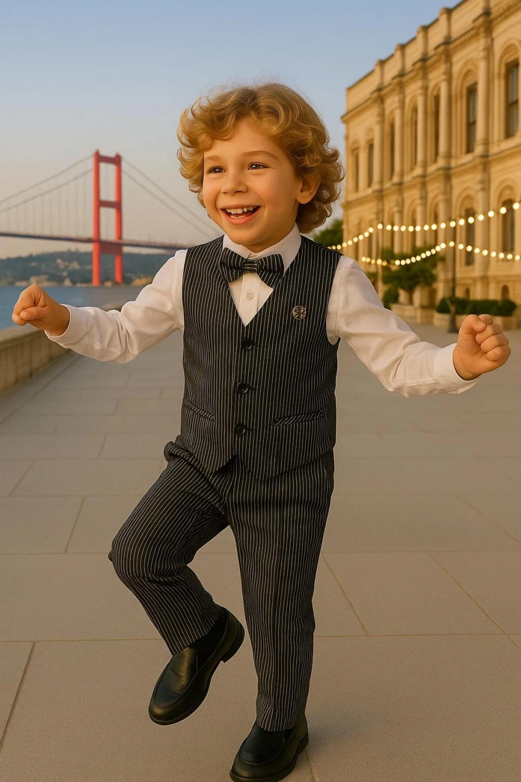 Yelekli Erkek takım elbise / papyonlu yelekli takım / Gömlek-Yelek-Pantolon 3'Lü TAKIM